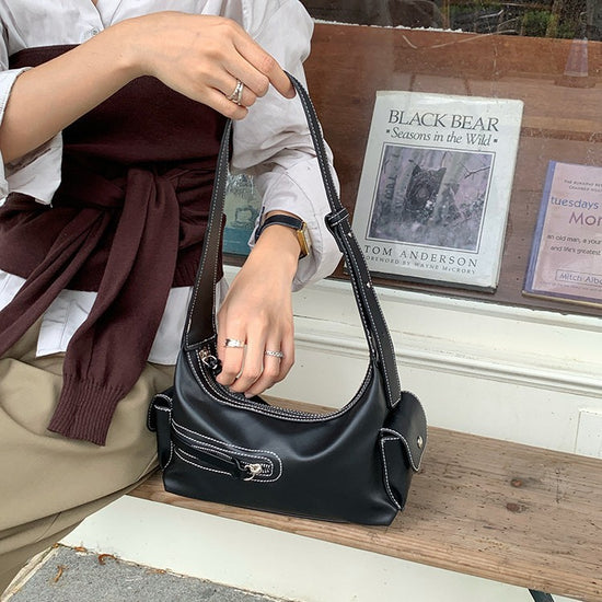 日韓流行|2025新款女包小眾設計潮酷帥辣妹機車腋下包單肩復古質感手提小包「9644#」25.10-2