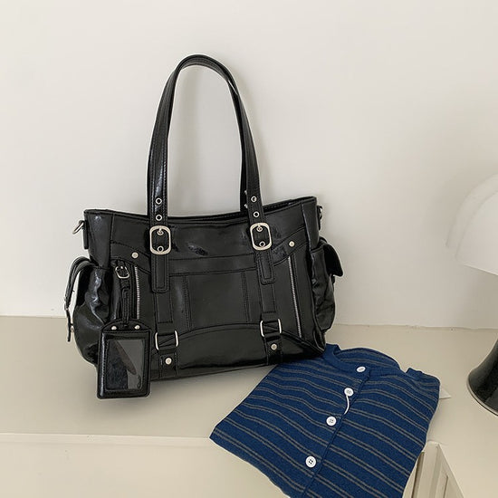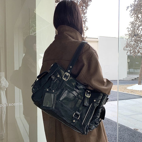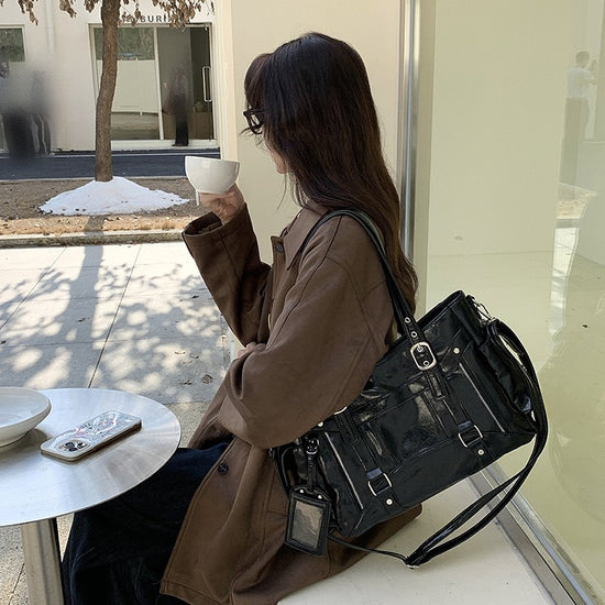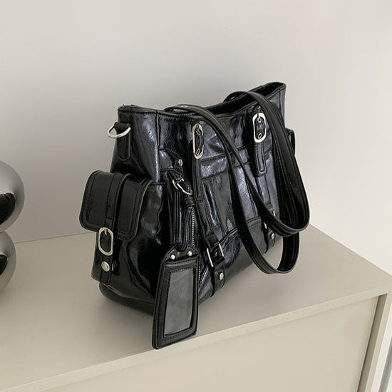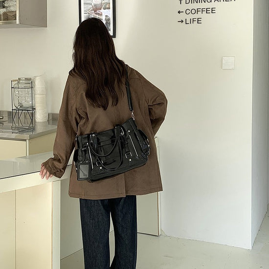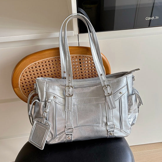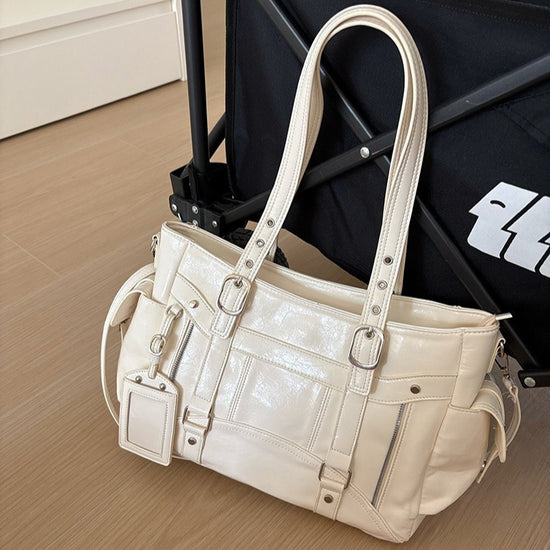 日韓流行|甜酷風大容量托特包2025新款潮個性百搭手提機車包簡約Y2K單肩包「9651#」25.10-2