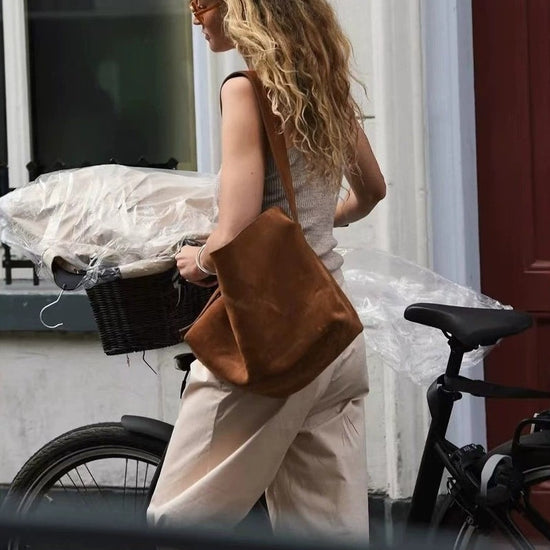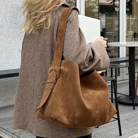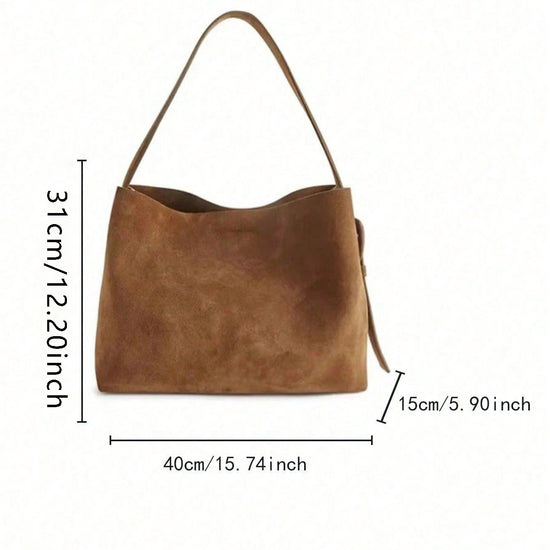 日韓流行|復古通勤大容量單肩包包女百搭棕色托特包氣質絨面手提腋下水桶包「9659#」25.10-3