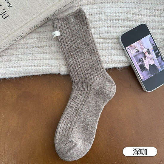 女襪|襪子女冬季加厚保暖蓄熱鎖溫羊毛襪韓系ins布標彈力中筒襪「AM25119」25.11-3