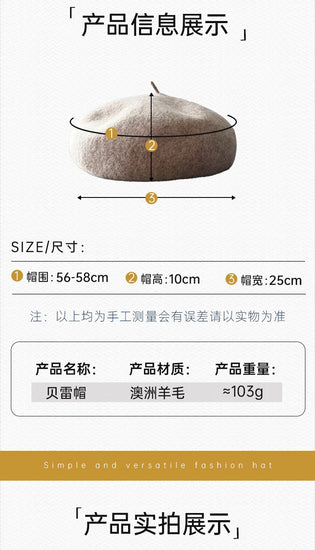 流行帽子|2024秋冬新款羊毛貝雷帽女士文藝復古顯臉小冬季保暖毛呢畫家帽子「BL8147」24.10-1