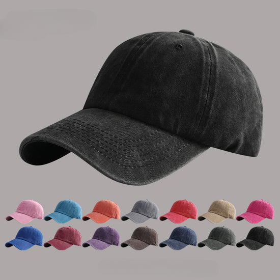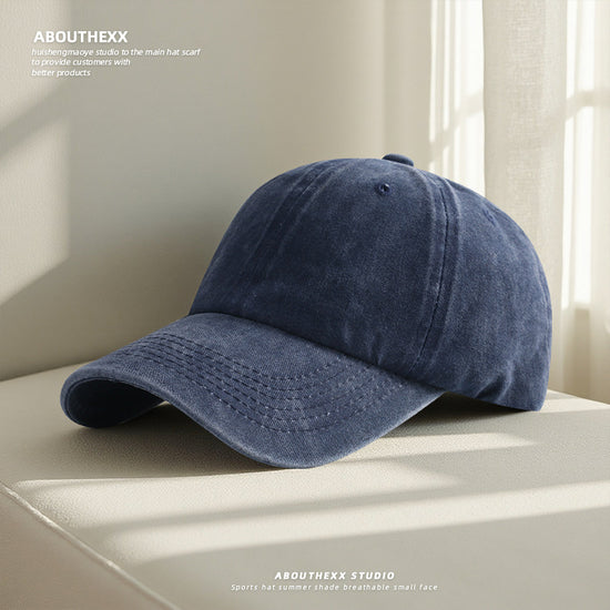 流行帽子|大頭圍跨境帽子水洗牛仔做舊棒球帽純色百搭顯臉小鴨舌帽男遮陽帽「C0311AA」25.07-3