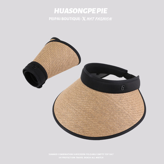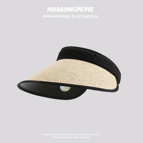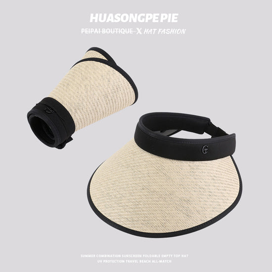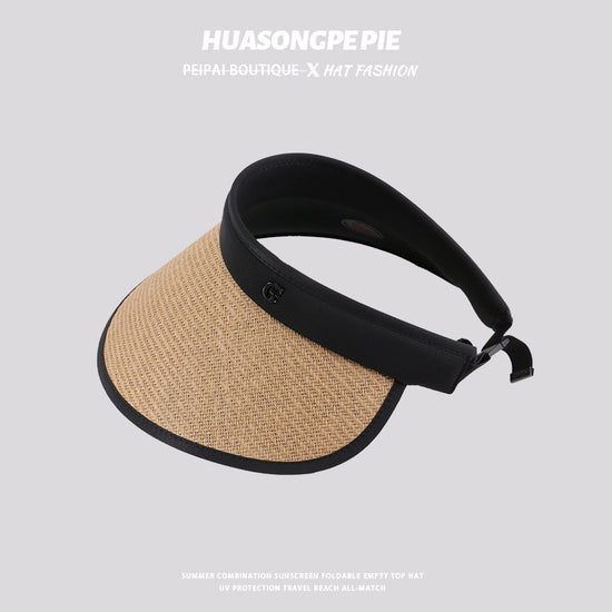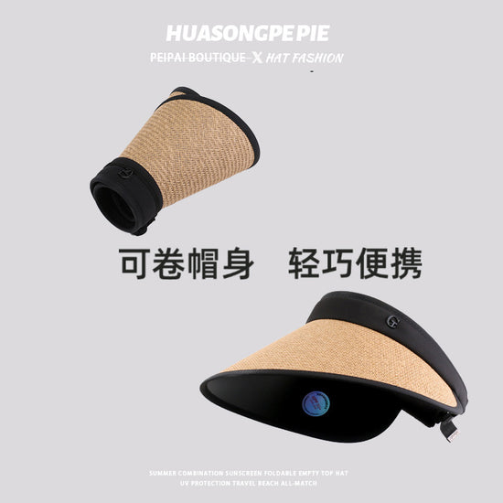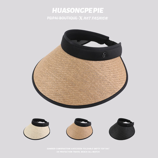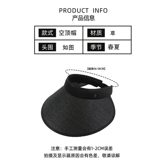 流行帽子|防曬帽子女夏季拉菲草空頂帽遮陽發箍大檐戶外沙灘太陽帽防紫外線「C2307」24.03-3