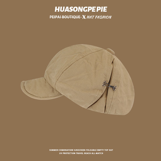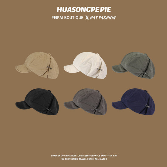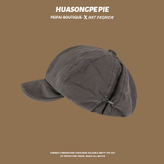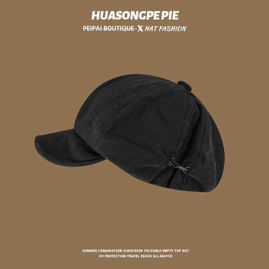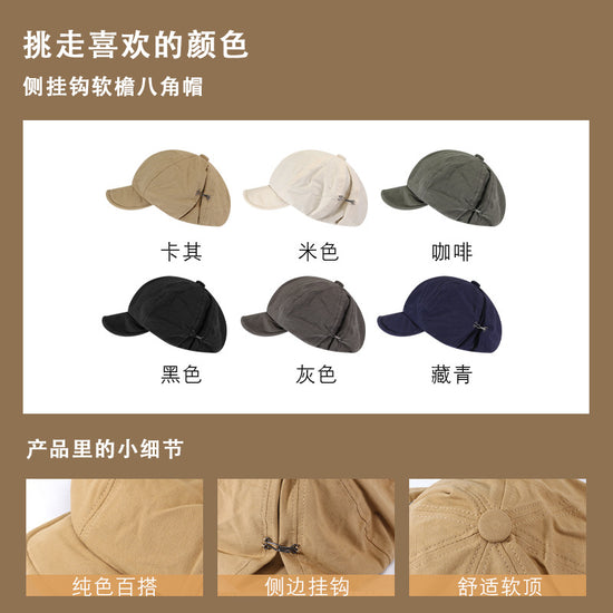 流行帽子|帽子女2024新款春秋季百搭純色側掛鈎軟檐八角帽顯臉小防風畫家帽「C2562」24.07-1