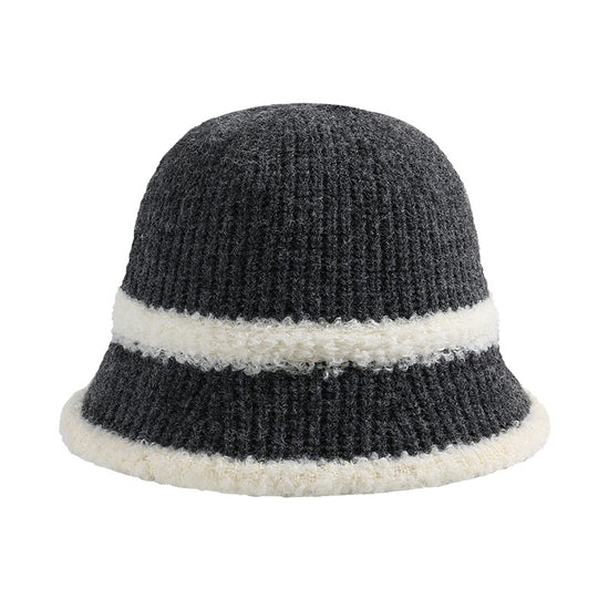流行帽子|2025新款大頭圍帽子女保暖漁夫帽護耳百搭針織帽韓版戶外條紋盆帽「C2621A」25.10-3