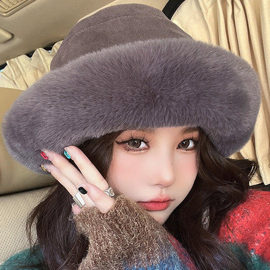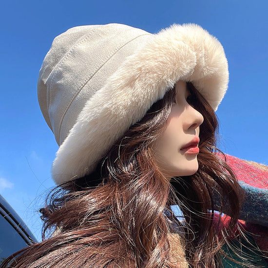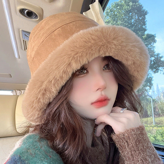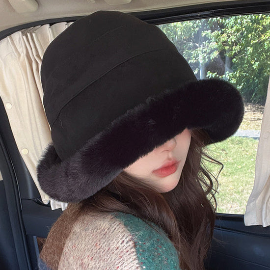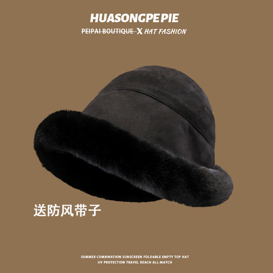 流行帽子|冬季百搭蒙古帽麂皮絨加絨仿羊羔毛加厚漁夫帽保暖學生顯臉小盆帽「C3560」24.01-3