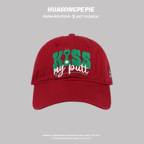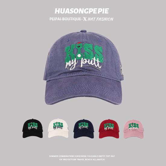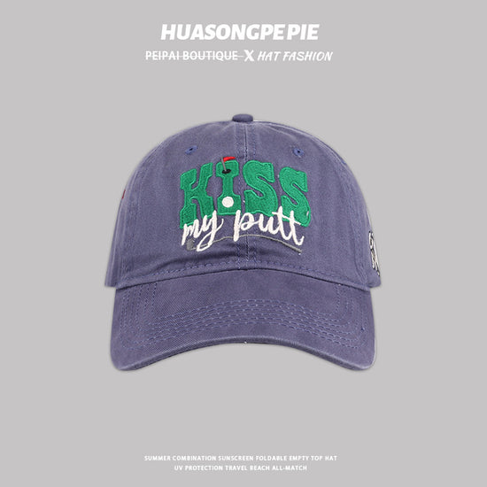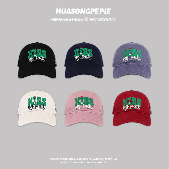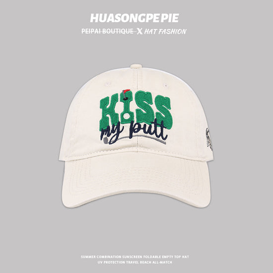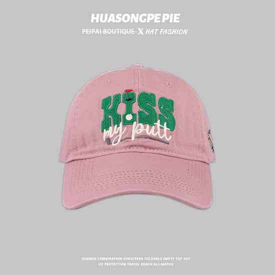 流行帽子|新款刺繡英文KISS棒球帽韓版百搭帽子女軟頂遮陽帽休閒防曬鴨舌帽「C3621」24.01-3