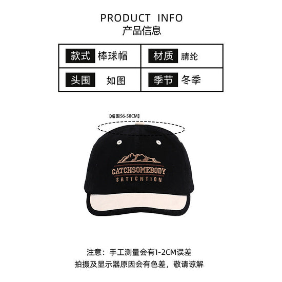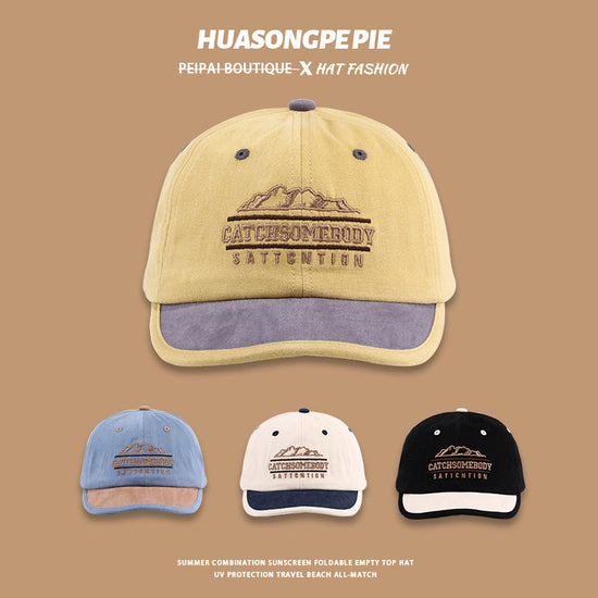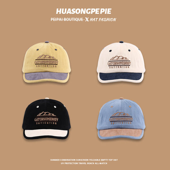 流行帽子|新款日系復古短檐棒球帽拼色刺繡英文鴨舌帽女學生個性百搭帽子女「C3626」24.01-3