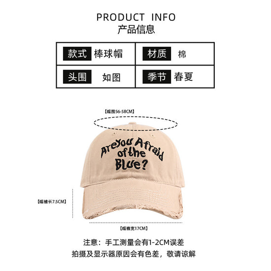 流行帽子|2024男女同款春夏棒球帽網紅百搭顯臉小休閒破邊遮陽帽學生鴨舌帽「C3630」24.01-3