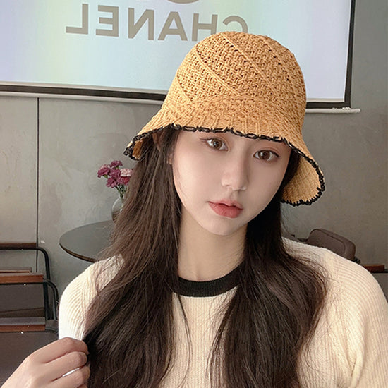 流行帽子|花邊鏤空草帽夏季防曬防紫外線顯臉小遮陽帽日系水桶帽沙灘太陽帽「C3722」24.03-1