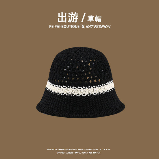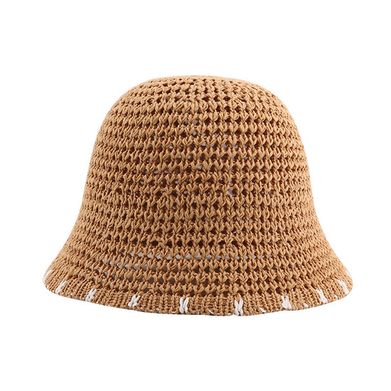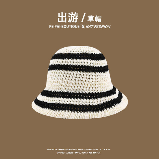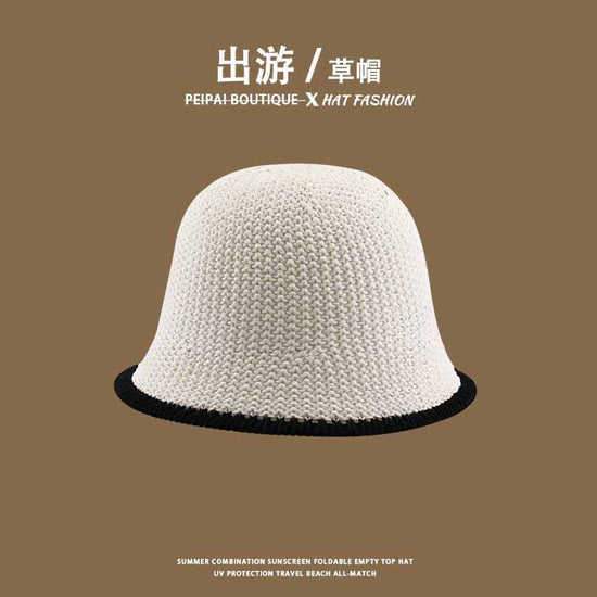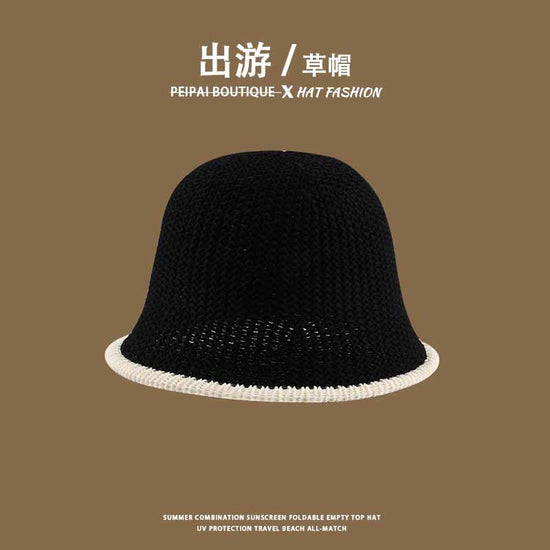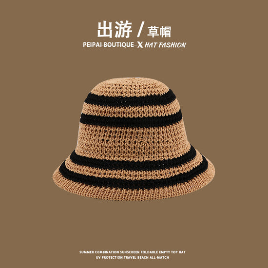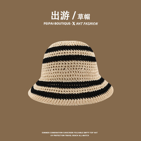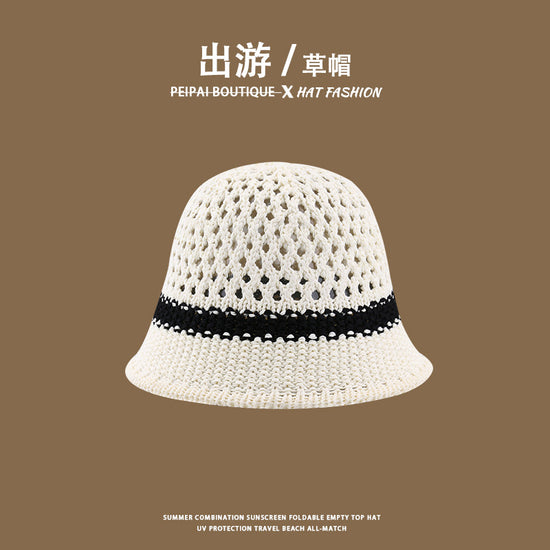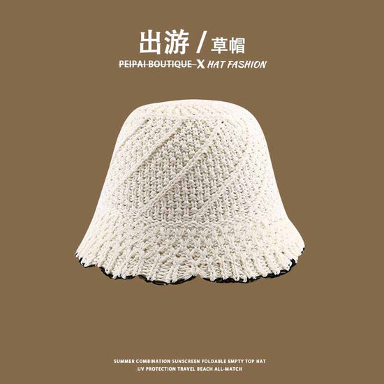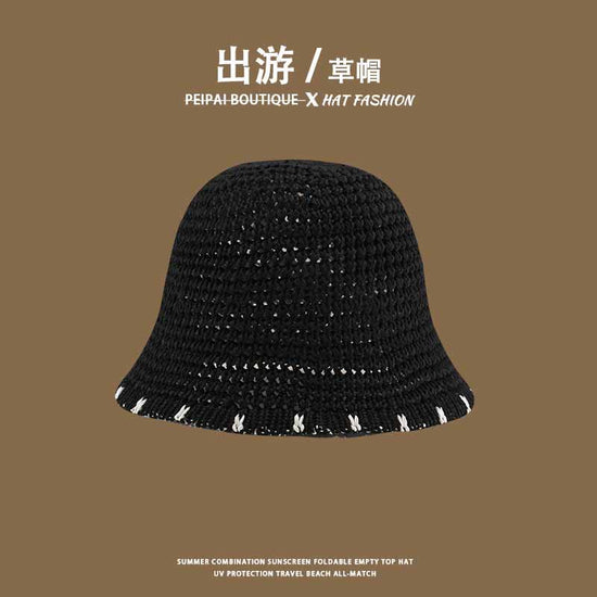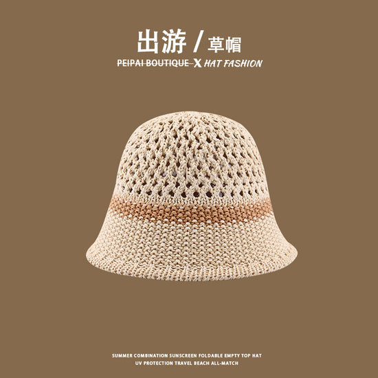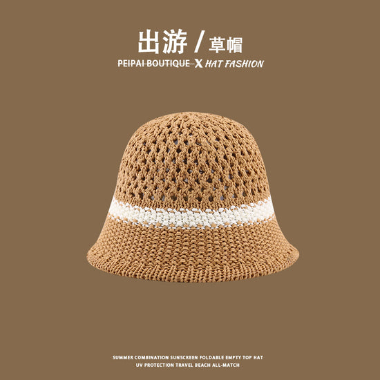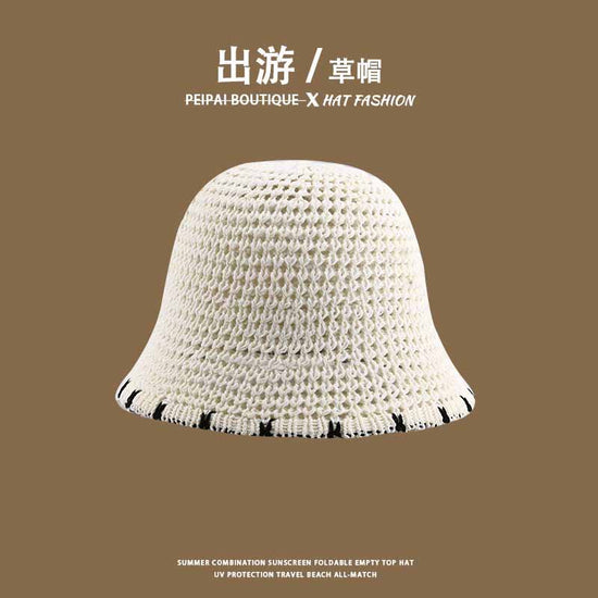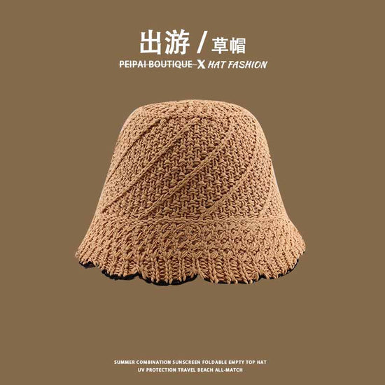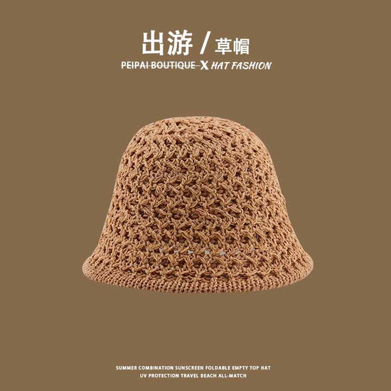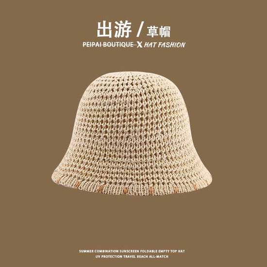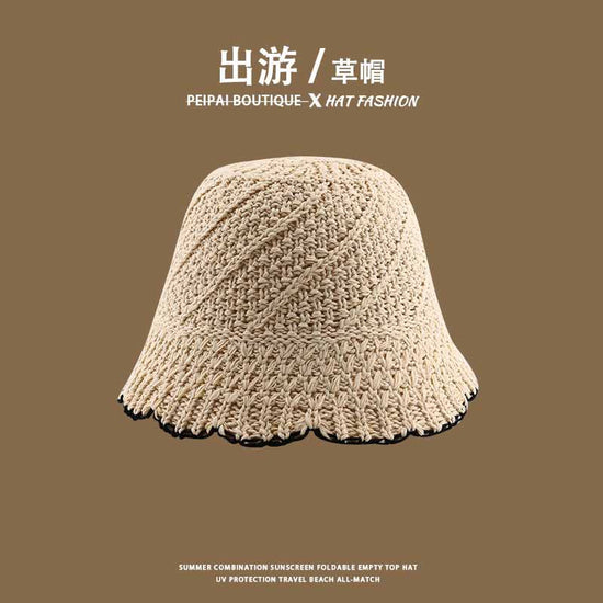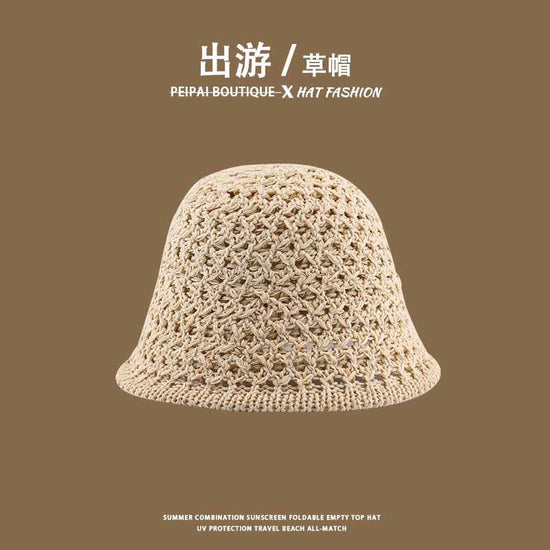 流行帽子|草帽編織女可折疊沙灘帽夏季鏤空透氣水桶帽甜美海邊遮陽帽子批發「C3748」24.03-4
