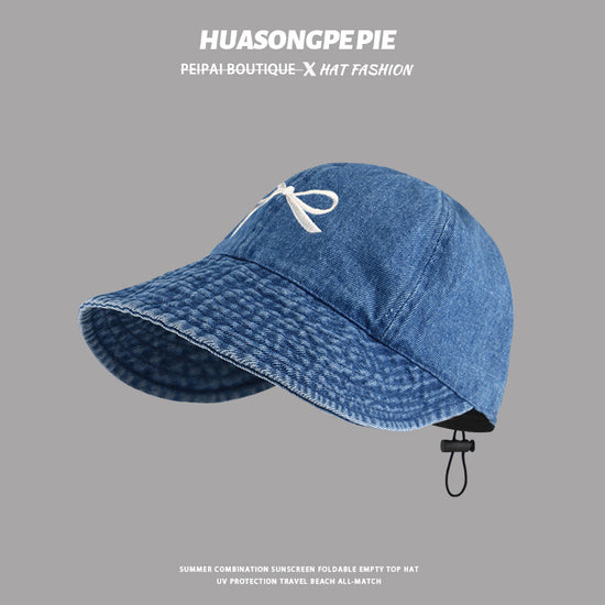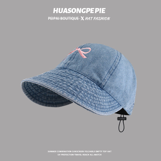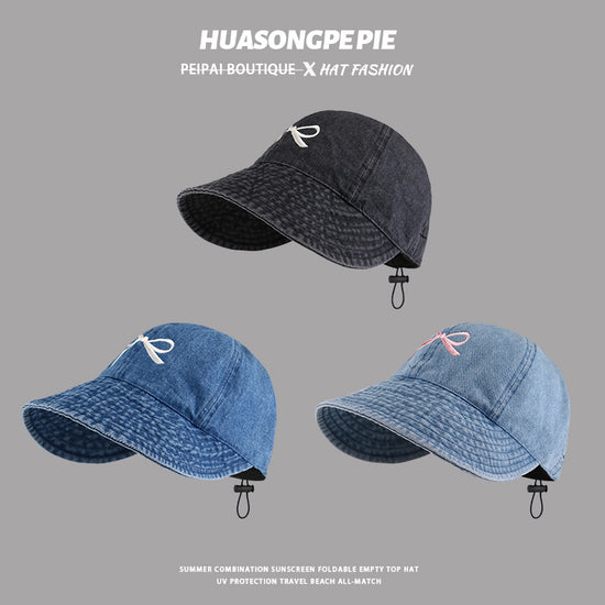 流行帽子|蝴蝶結牛仔漁夫帽女明星同款夏季遮陽帽出行顯臉小穿搭時尚鴨舌帽「C3757」24.04-1