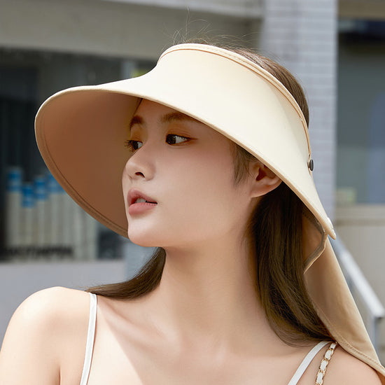 流行帽子|騎車防曬太陽帽夏季新款無痕一體空頂帽大檐顯臉小薄款速乾帽子女「C3961」24.05-3