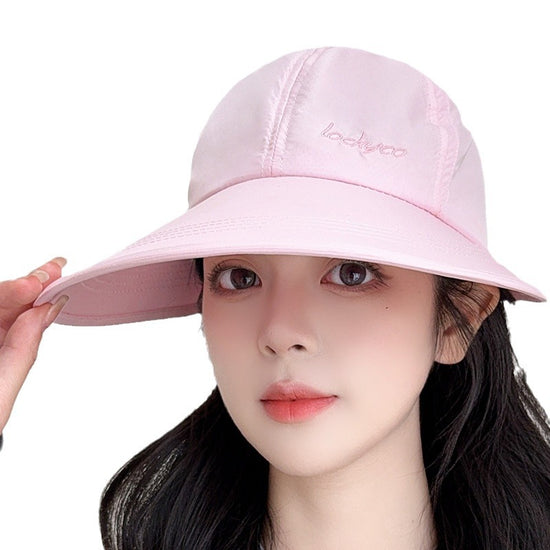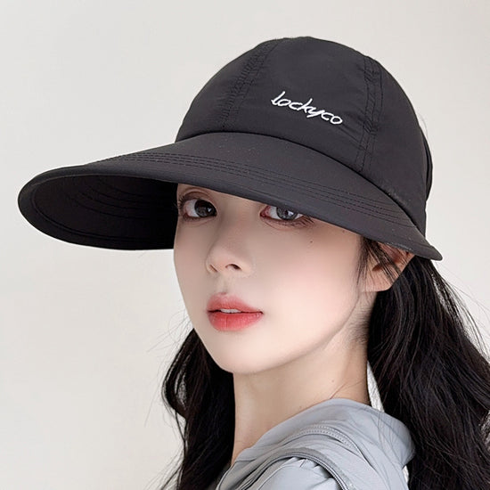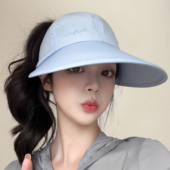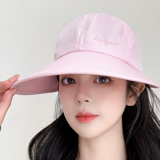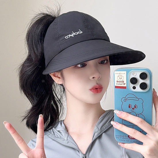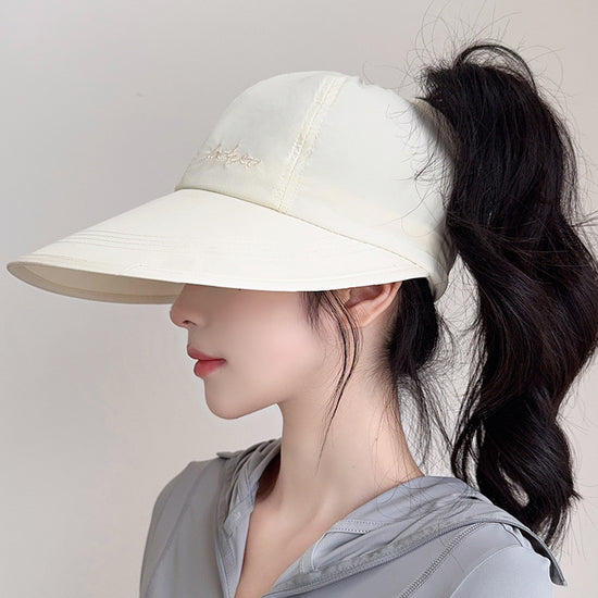 流行帽子|帽子女半包後可扎馬尾字母刺繡高品質百搭防曬帽沙灘寬帽檐空頂帽「C3970」24.05-3