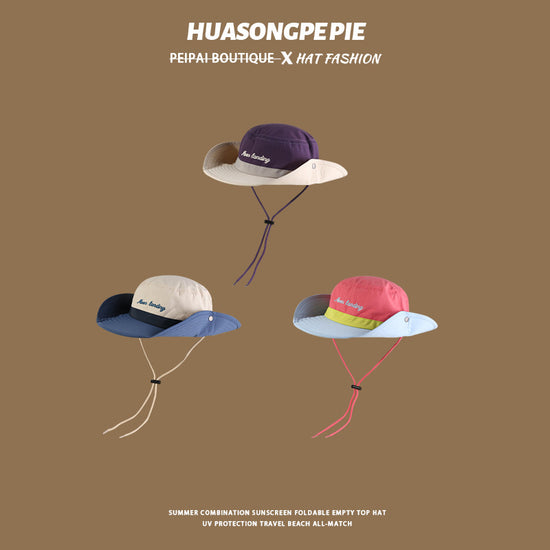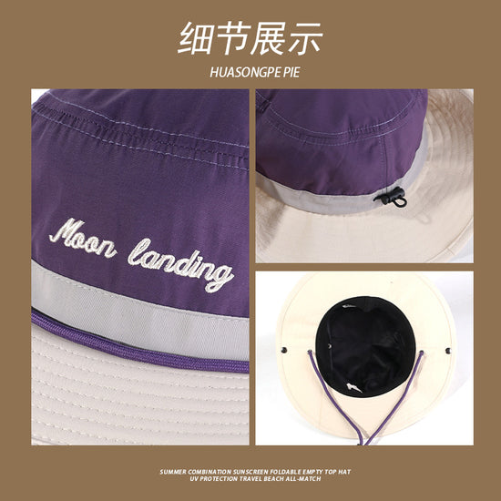 流行帽子|帽子防曬帽夏季女日系三拼色字母刺繡漁夫帽大檐遮臉百搭登山帽潮「C4089」24.06-4