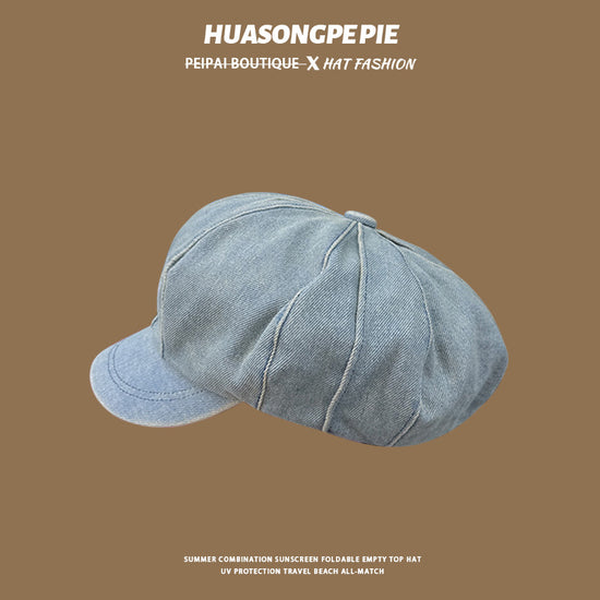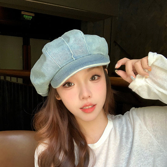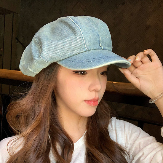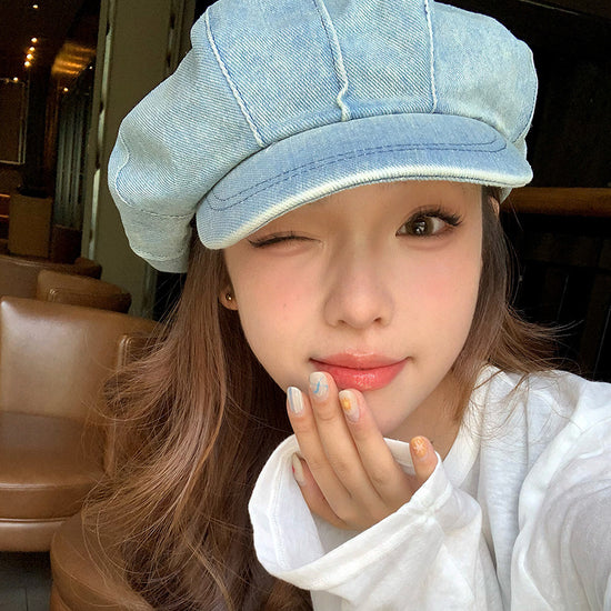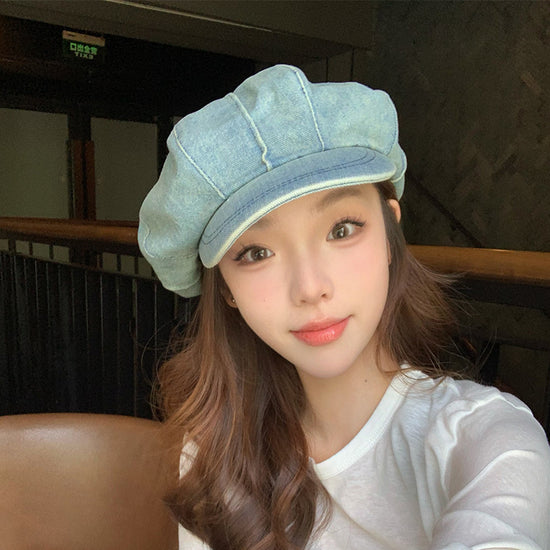 流行帽子|牛仔雲朵帽夏秋百搭大頭圍顯臉小畫家帽復古做舊貝雷帽文藝八角帽「C4126」24.08-1