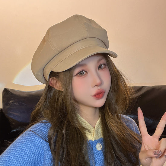 流行帽子|純色八角帽春秋女高級感復古簡約畫家帽時尚英倫港風學生報童帽子「C4188」24.07-5