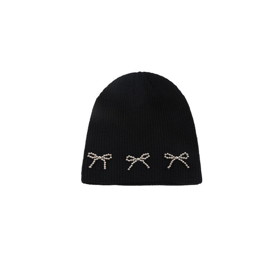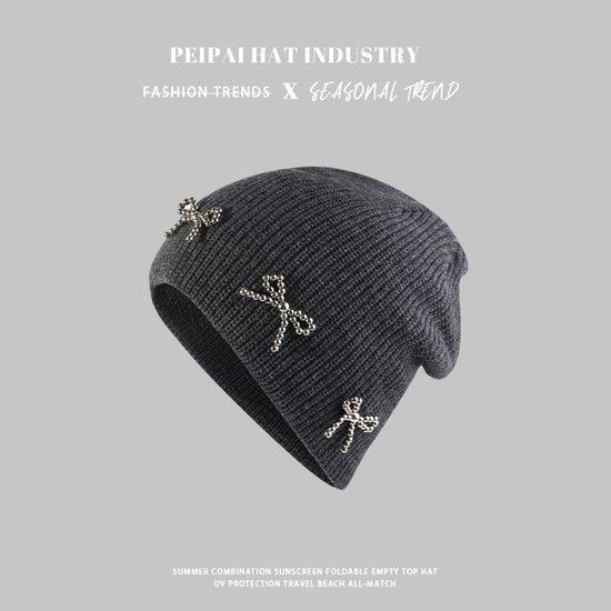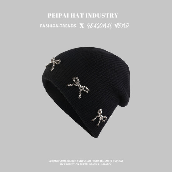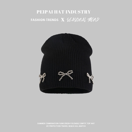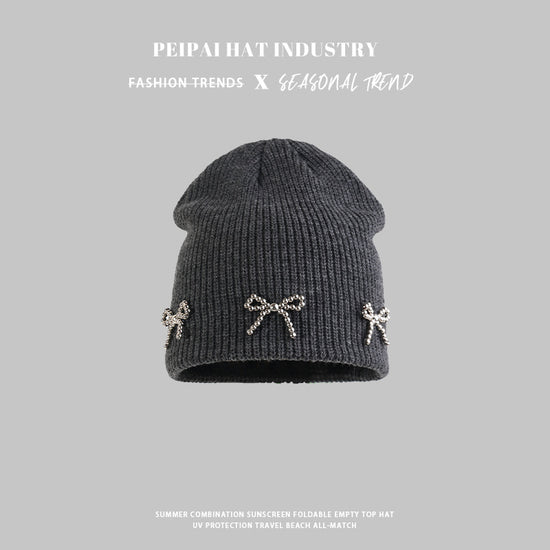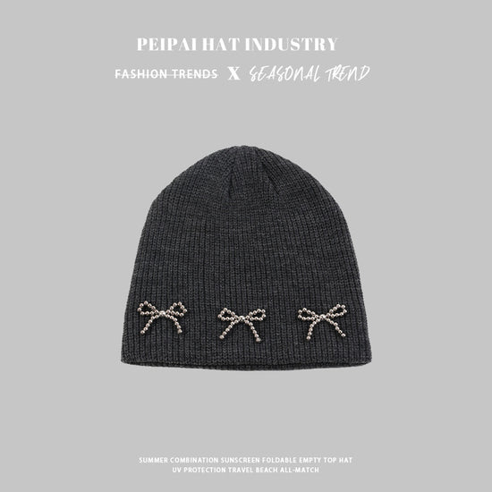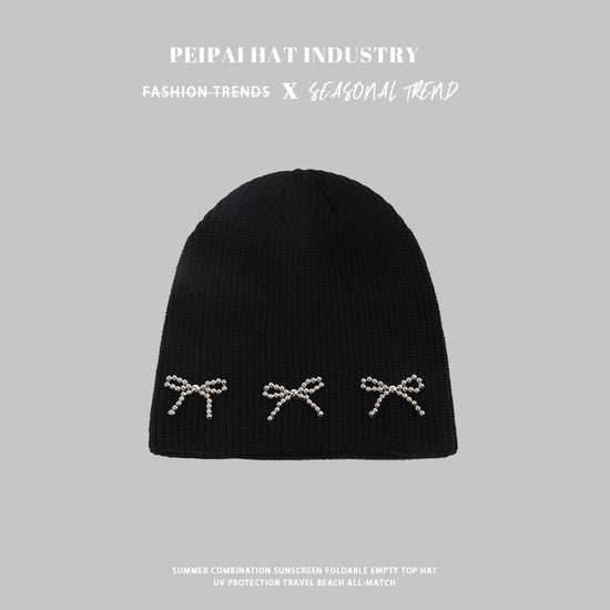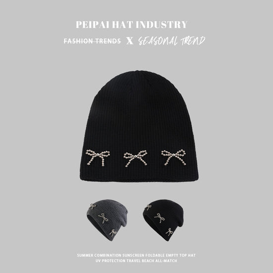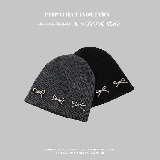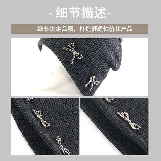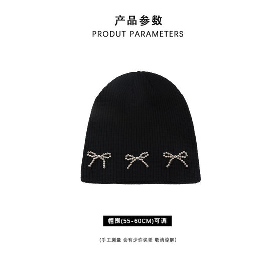 流行帽子|韓國博主同款蝴蝶結針織毛線帽秋冬ins大頭圍百搭時尚護耳冷帽女「C4378」24.09-1