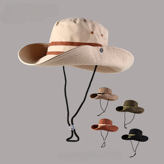 流行帽子|戶外露營大帽檐速乾帽子女防紫外線登山漁夫帽抽繩遮陽釣魚防曬帽「C4407QC」25.07-3