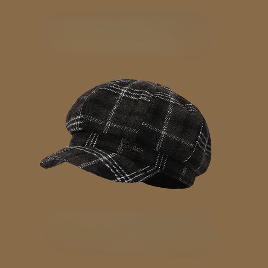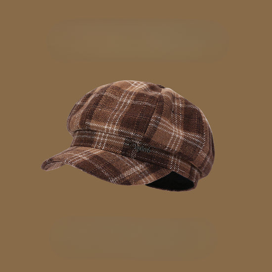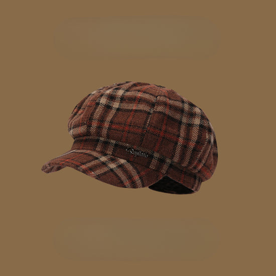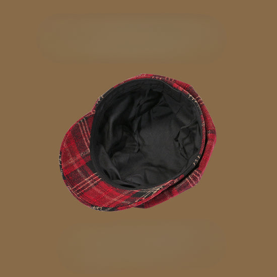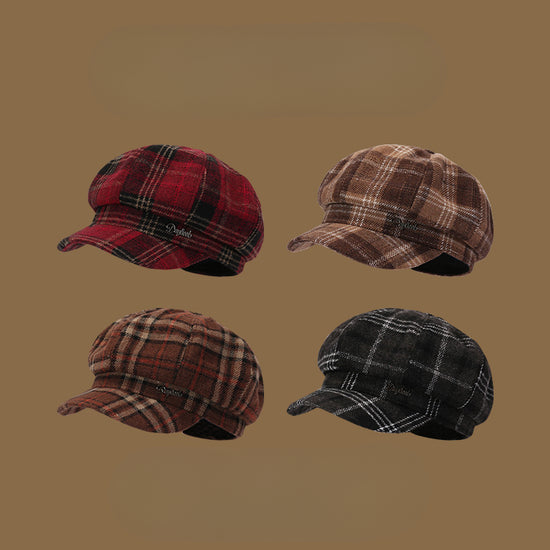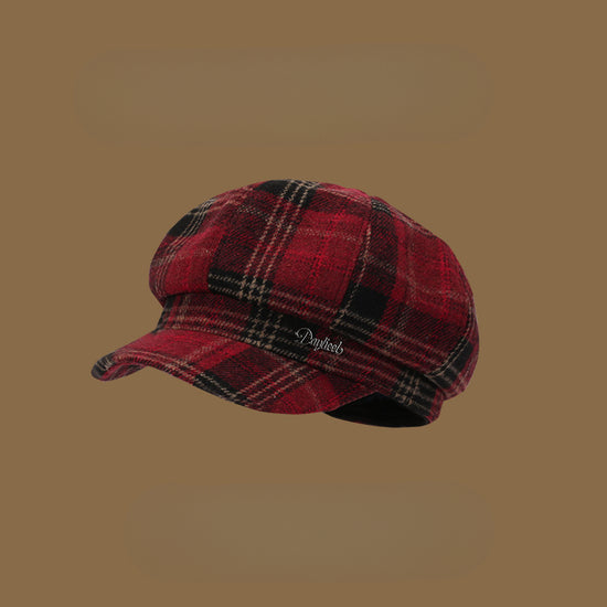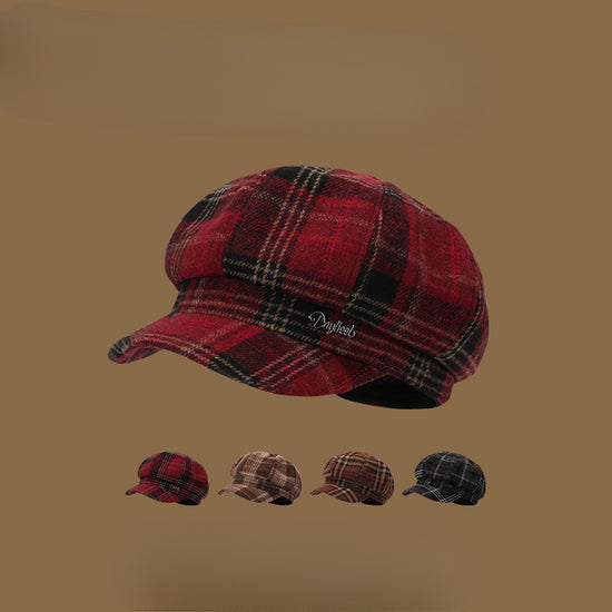 流行帽子|復古格子毛呢八角帽女時尚英倫百搭畫家帽紅色休息顯臉小報童帽子「C4720」24.10-4