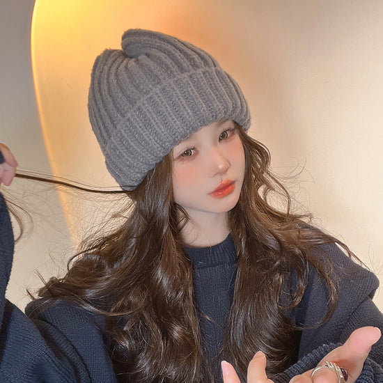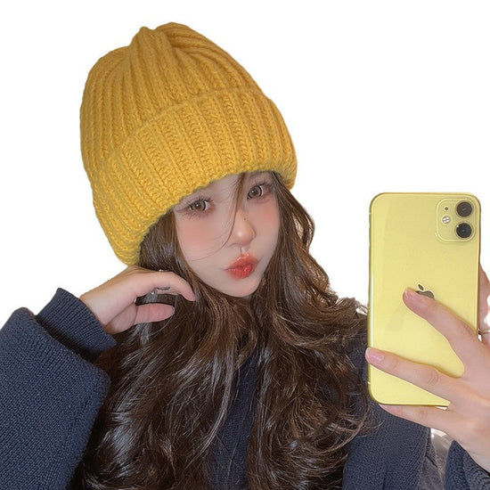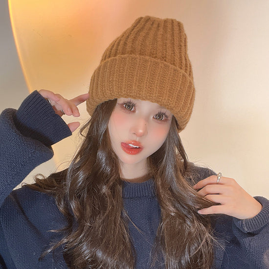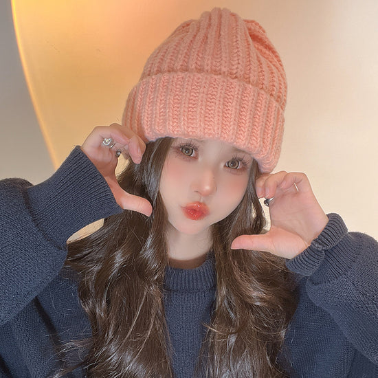 流行帽子|帽子女純色百搭毛線帽秋冬保暖護耳套頭帽顯臉小學生戶外針織帽男「C4825」24.11-3