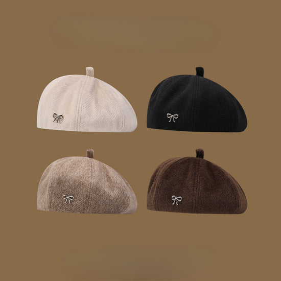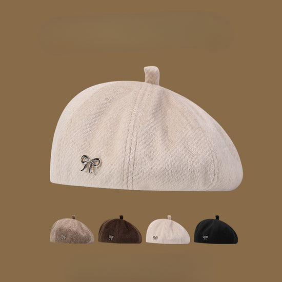 流行帽子|雷帽子女時尚百搭英倫復古畫家帽透氣短絨蝴蝶結秋冬報童八角帽「C4843」24.12-1