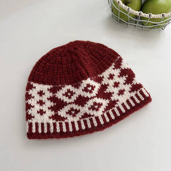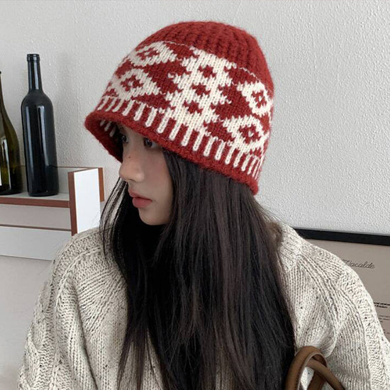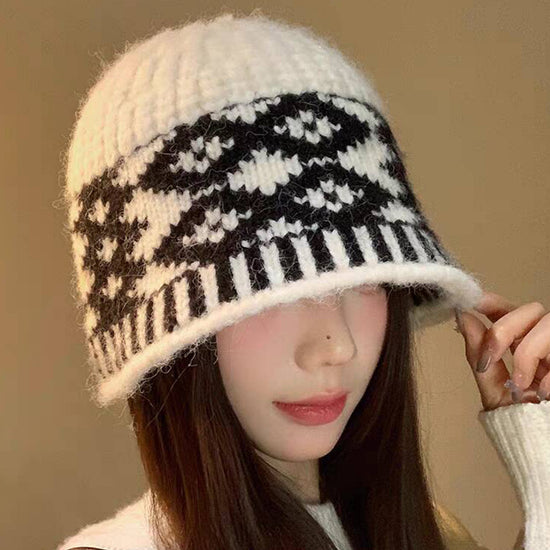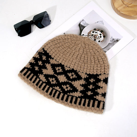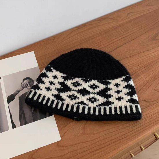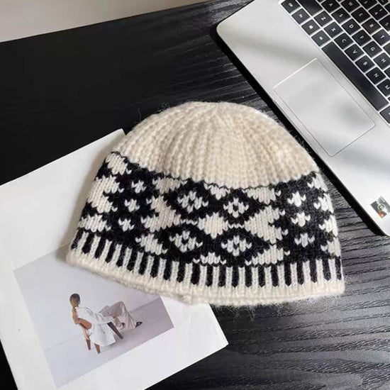流行帽子|提花格紋針織帽女復古秋冬保暖顯臉小毛線帽撞色小眾學生護耳帽子「C4856」24.11-4