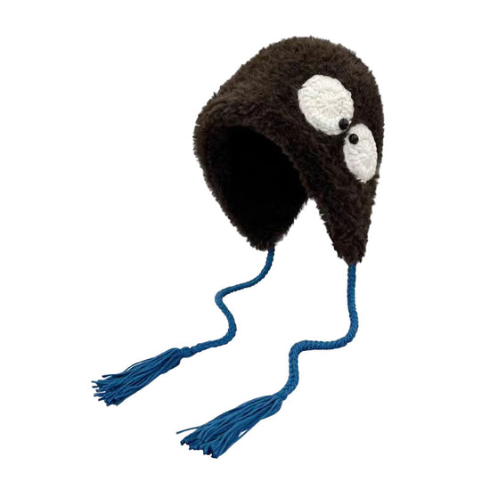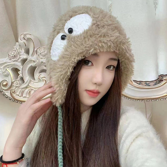C4867呆萌大眼毛絨系帶護耳帽