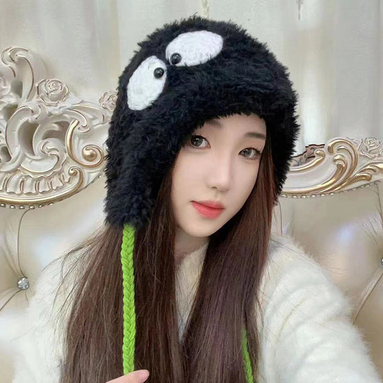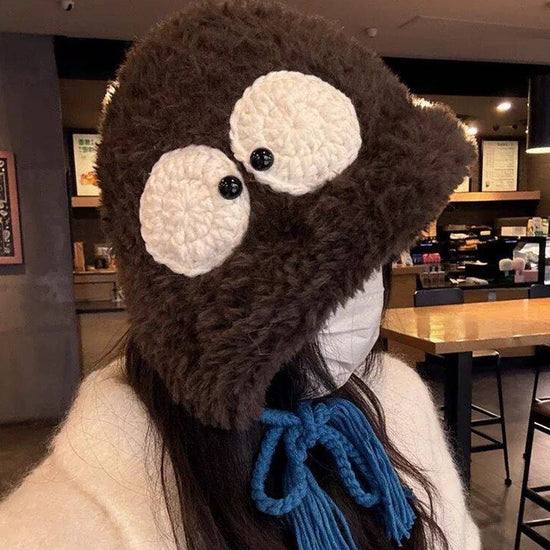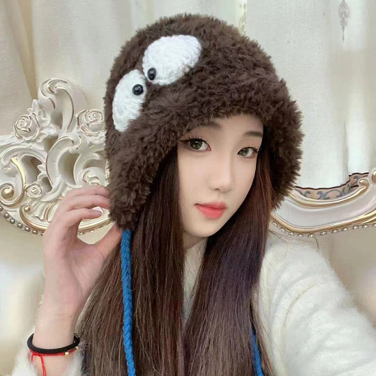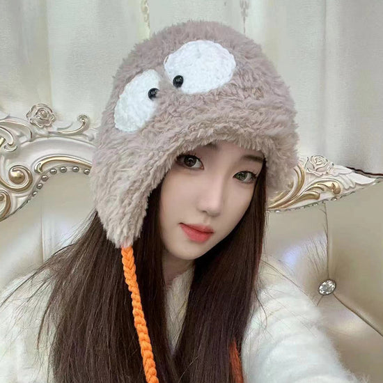 流行帽子|萌趣大眼睛毛絨帽冬季保暖可愛百搭護耳帽加厚學生騎行防寒針織帽「C4867」24.12-2