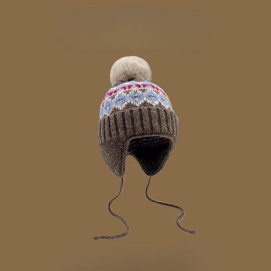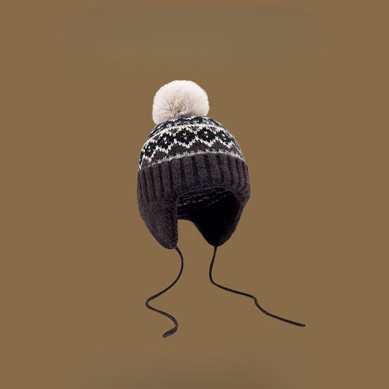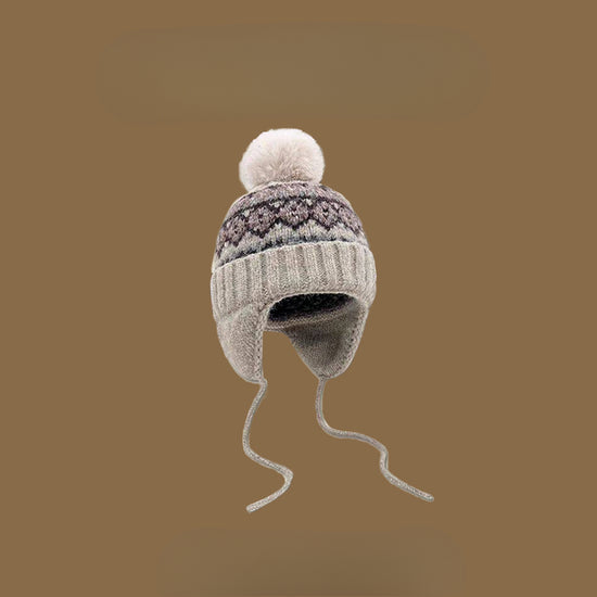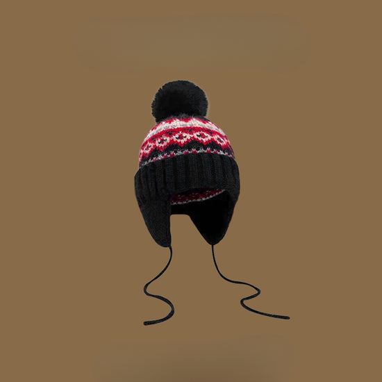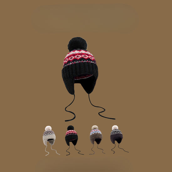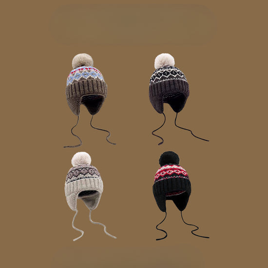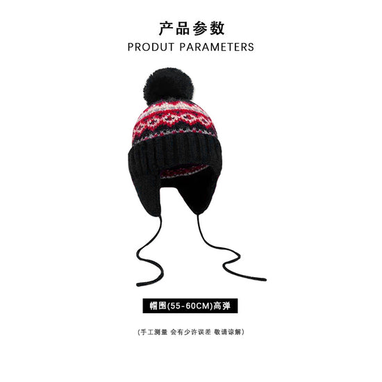流行帽子|帽子冬季女費爾島風提花毛球毛線帽韓系百搭護耳帽學生保暖雷鋒帽「C4870」24.12-2