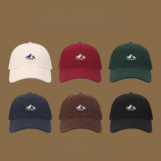 流行帽子|山峰刺繡棒球帽女百搭顯臉小半硬頂鴨舌帽戶外出遊防曬遮陽帽男「C4923」25.01-2
