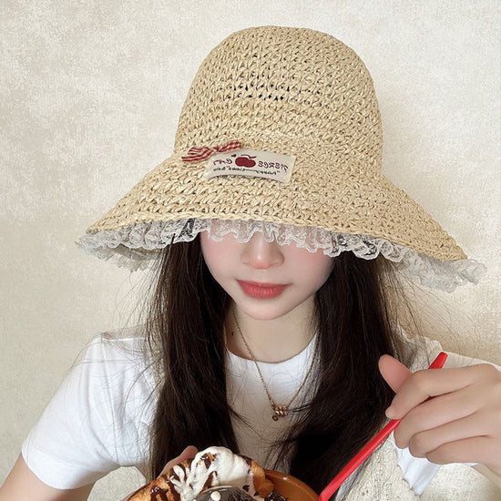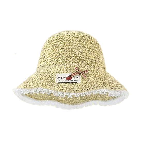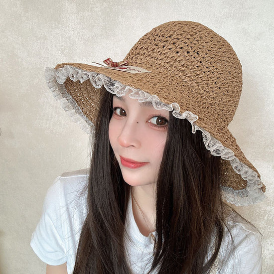 流行帽子|蕾絲邊蝴蝶結鏤空草帽女士夏季海邊度假沙灘太陽帽透氣防曬遮陽帽「C5024」25.02-3