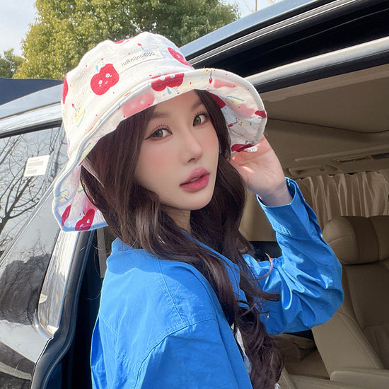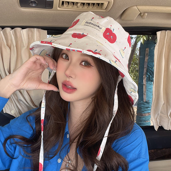 流行帽子|遮陽帽女韓版印花蘋果漁夫帽戶外夏季防紫外線遮陽帽戶外防曬帽子「C5056」25.03-1