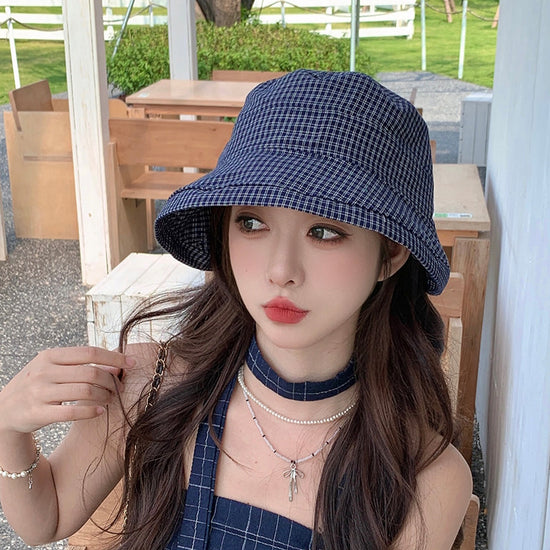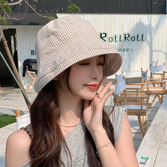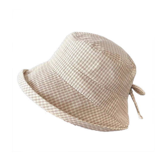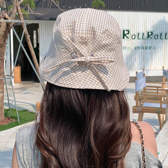 流行帽子|夏季新款格子帽子女蝴蝶結綁帶漁夫帽韓系百搭顯臉小防曬遮陽帽潮「C5262」25.05-2