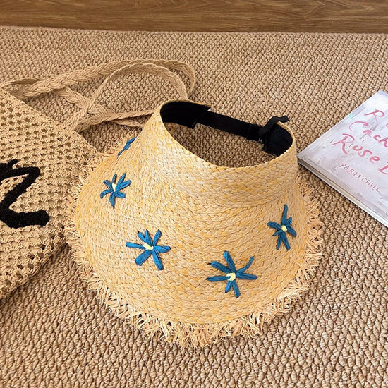 流行帽子|夏季海邊沙灘出遊帽子女休閒草編空頂帽大檐防紫外線防曬遮陽帽潮「C5311」25.06-2