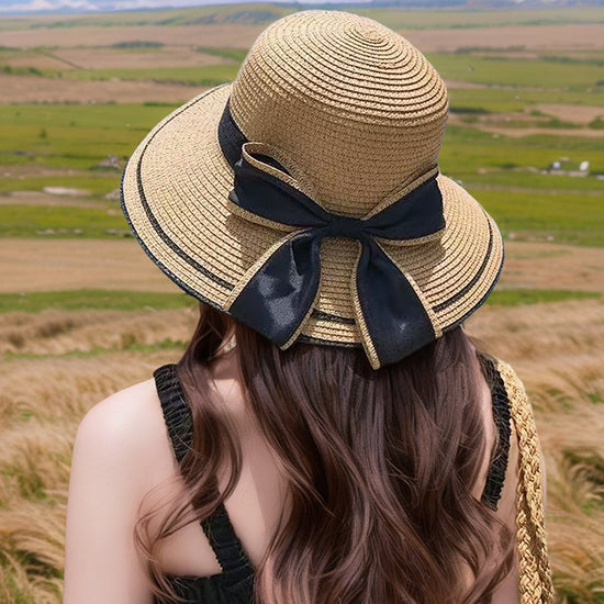 流行帽子|夏季新款蝴蝶結帽子女大檐防曬草帽戶外沙灘出遊防紫外線遮陽帽潮「C5343」25.06-4
