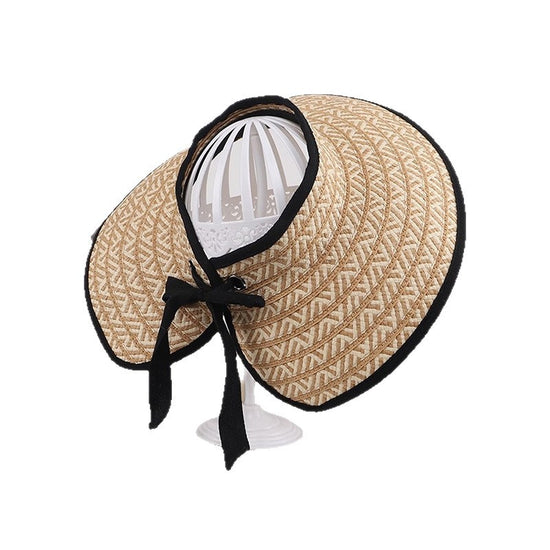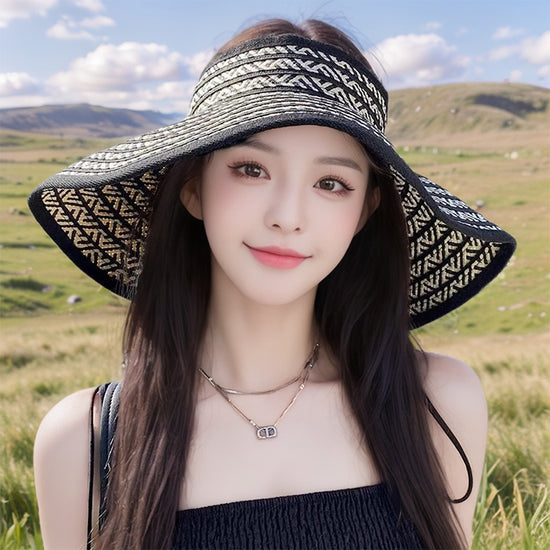 流行帽子|大檐可折疊出遊防曬空頂帽子女2025新款夏季遮陽帽防紫外線草帽子「C5351」25.06-4
