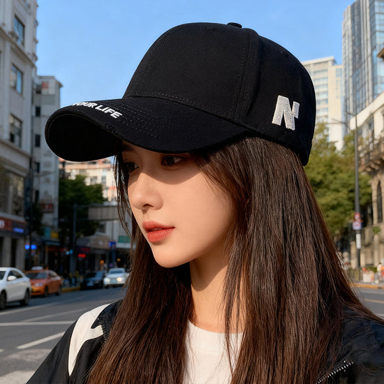 流行帽子|硬頂大頭圍帽子女簡約字母棒球帽顯臉小寬帽檐遮陽鴨舌帽男戶外潮「C5364-1」25.10-1