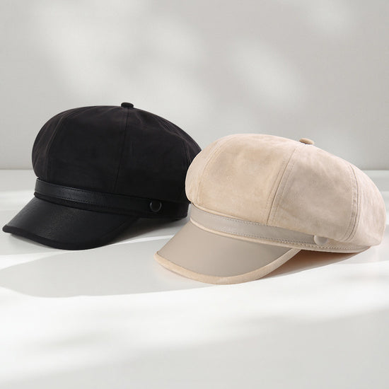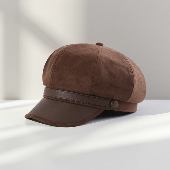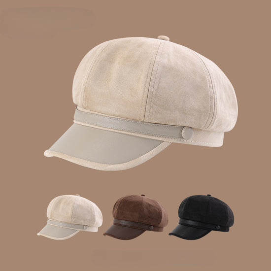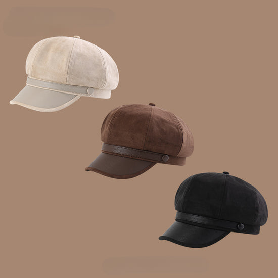 流行帽子|日系2025新款毛呢帽子女鴨舌報童帽大頭圍八角帽英倫復古畫家帽潮「C5453」25.08-1