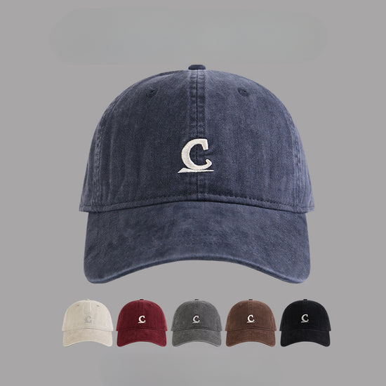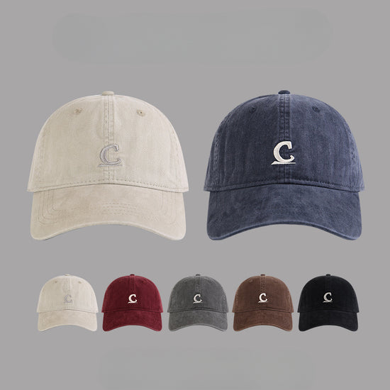 流行帽子|2025新款水洗做舊帽子女C字母棒球帽大頭圍深頂顯臉小情侶鴨舌帽「C5474」25.08-2