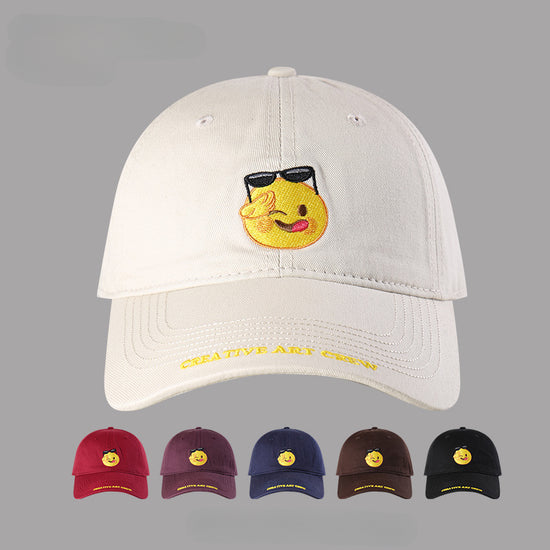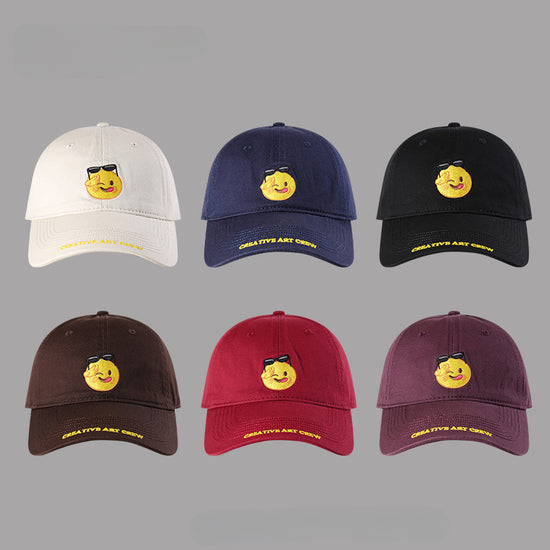流行帽子|2025新款大頭圍帽子女可愛笑臉刺繡棒球帽百搭顯臉小遮陽鴨舌帽男「C5515」25.08-4