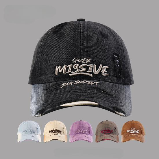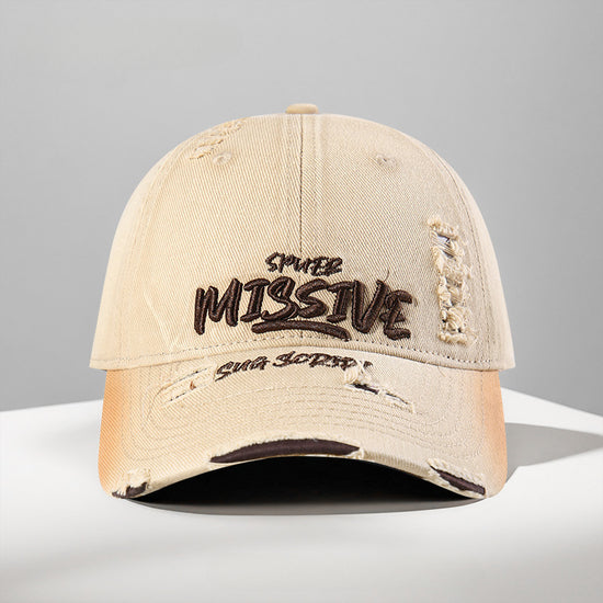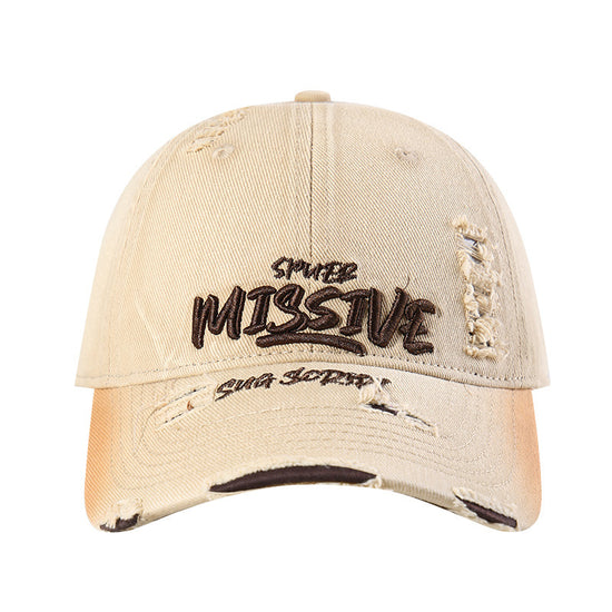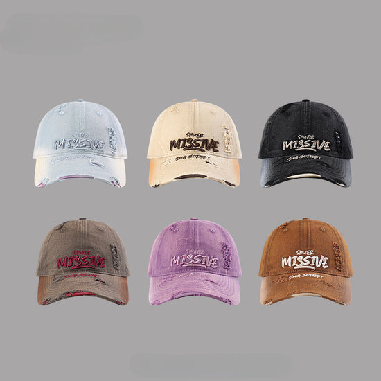 流行帽子|韓版新款美式字母刺繡破洞棒球帽春夏百搭顯臉小軟頂鴨舌帽子男潮「C5545」25.09-1
