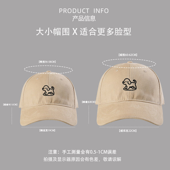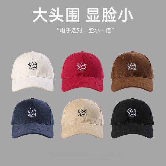 流行帽子|大頭圍顯臉小帽子女可愛小狗刺繡棒球帽寬檐深頂日系遮陽鴨舌帽男「C5552」25.09-1