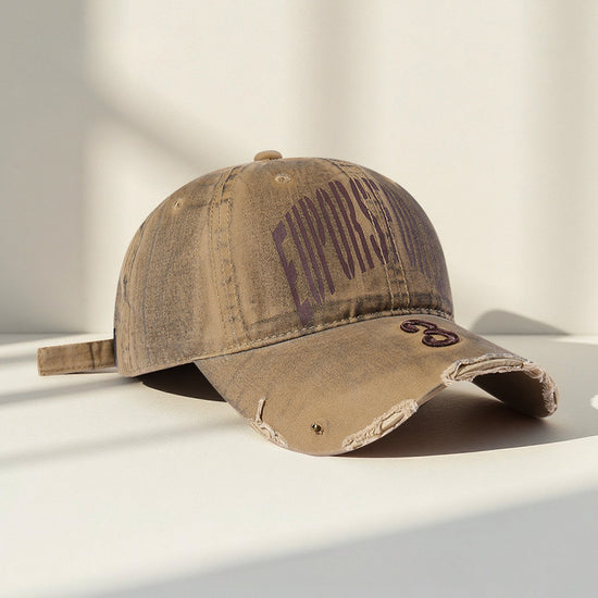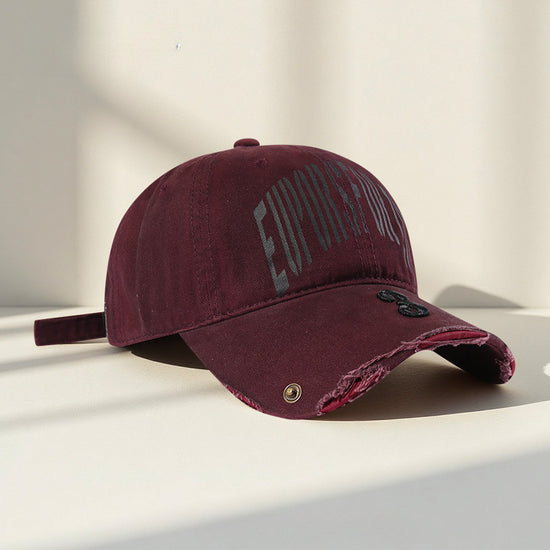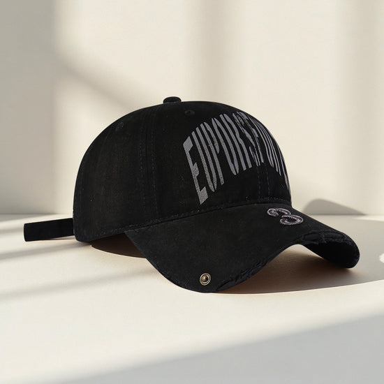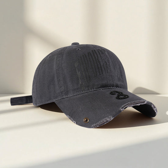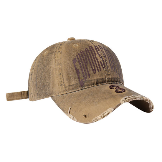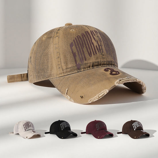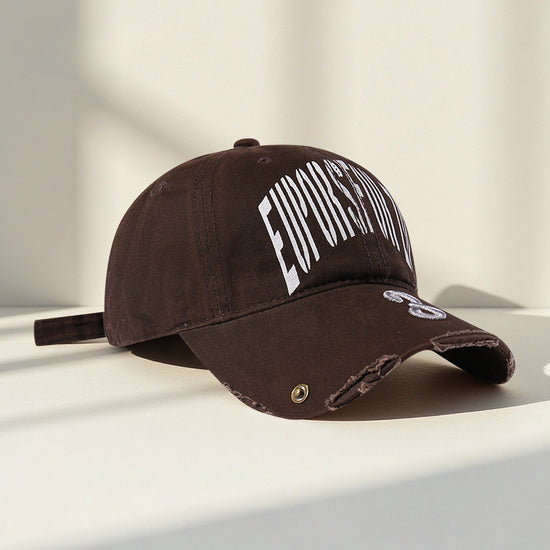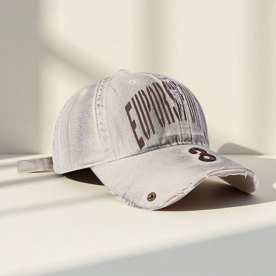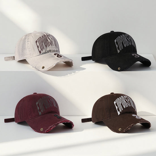 流行帽子|韓國復古破洞做舊字母鴨舌帽子女新款大頭圍寬帽檐顯臉小棒球帽男「C5598」25.09-2