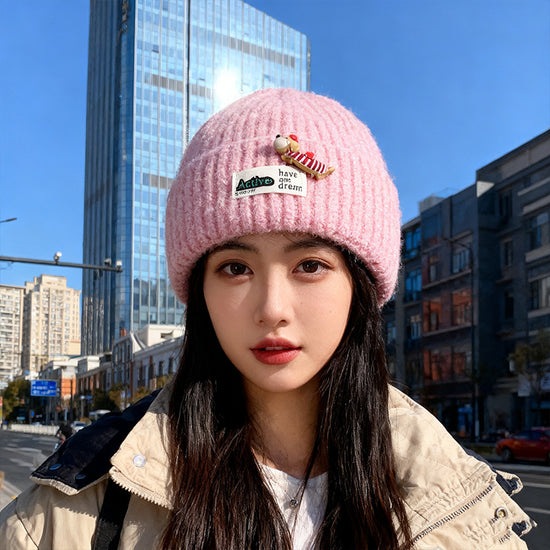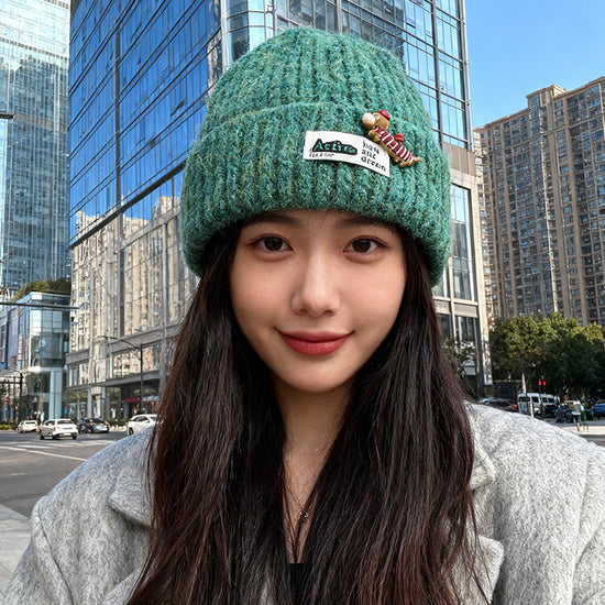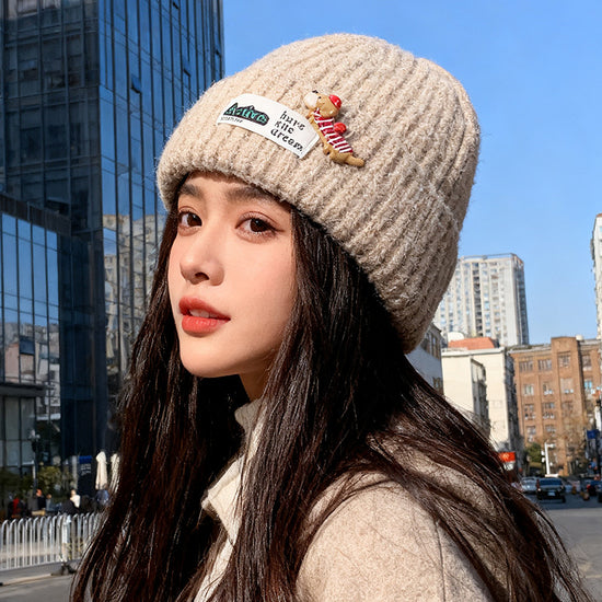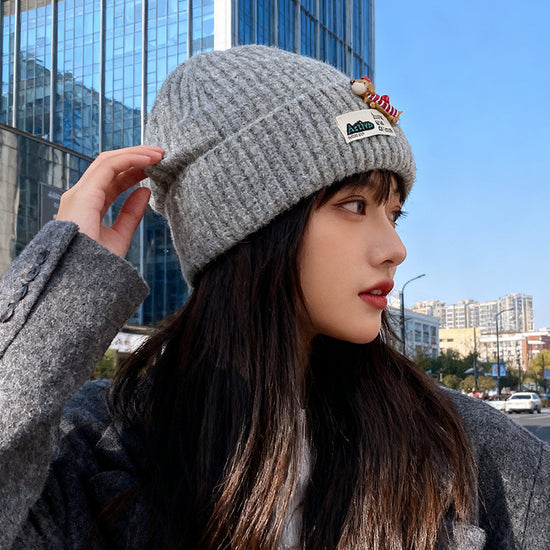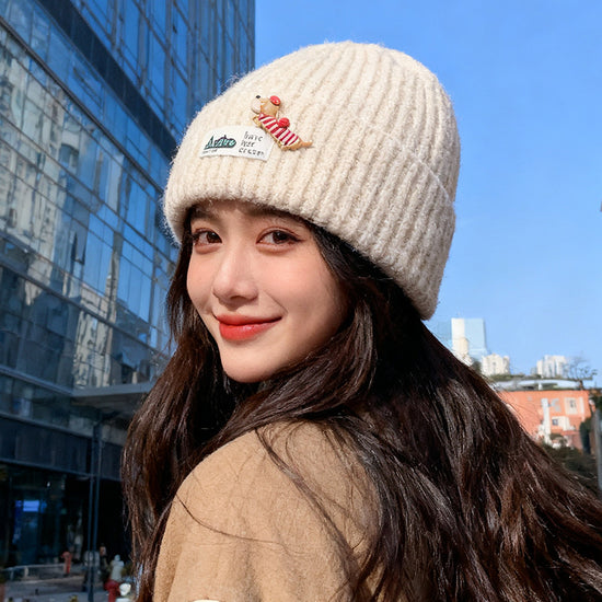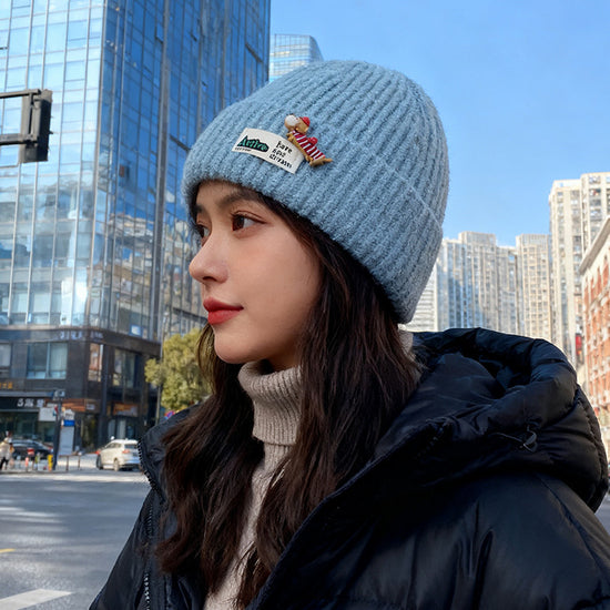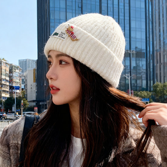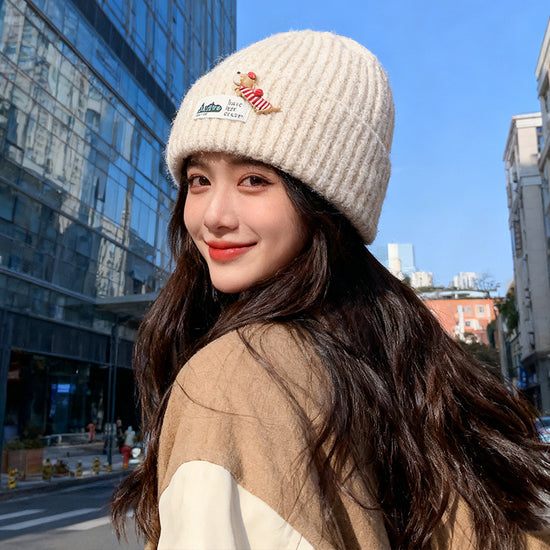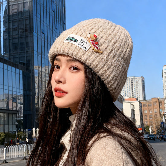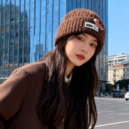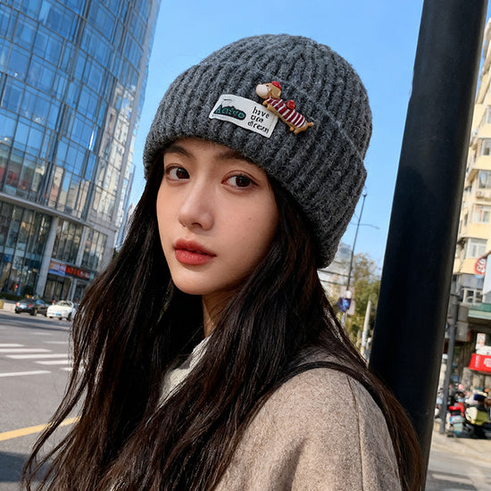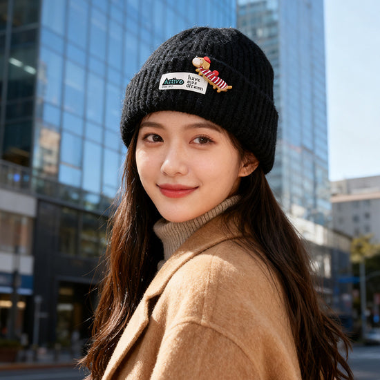 流行帽子|韓版針織帽子秋冬百搭顯臉小保暖毛線帽甜美可愛新款刺繡冷帽男潮「C5742」25.10-4