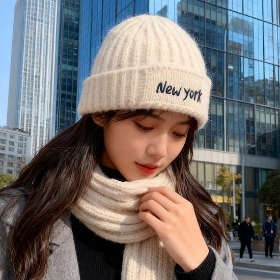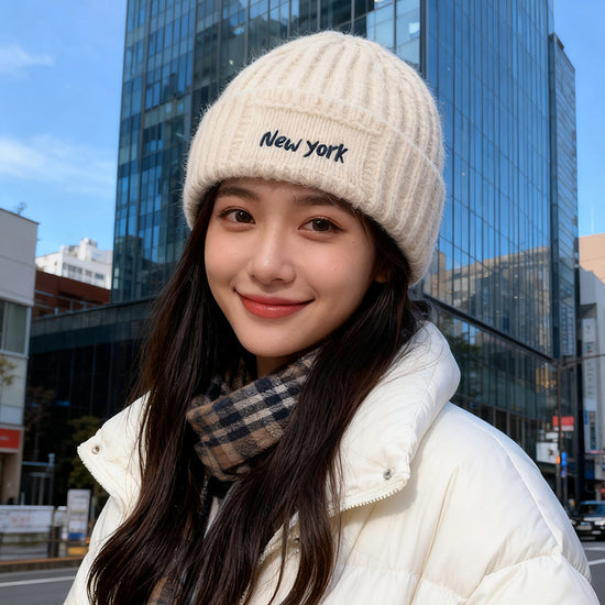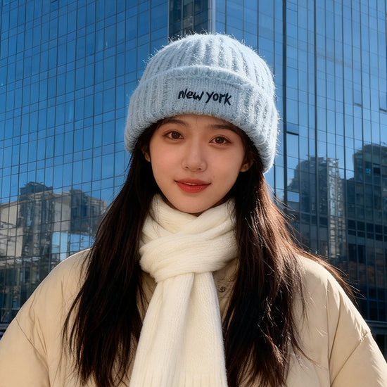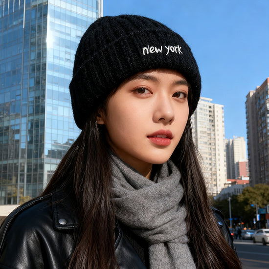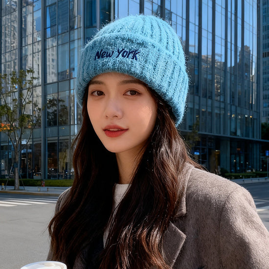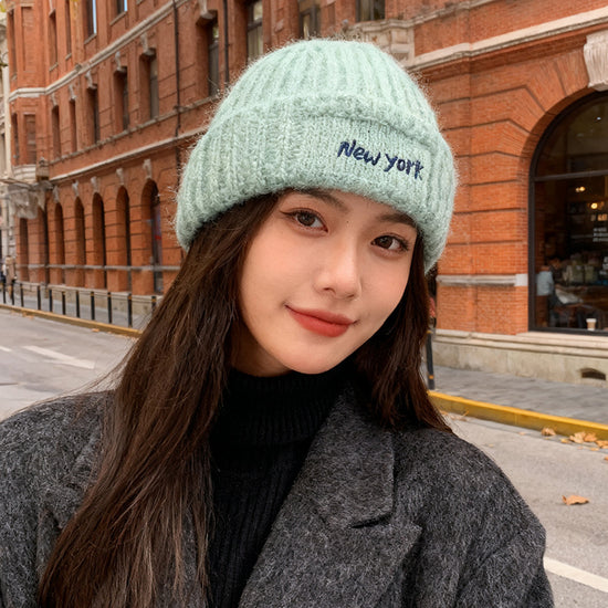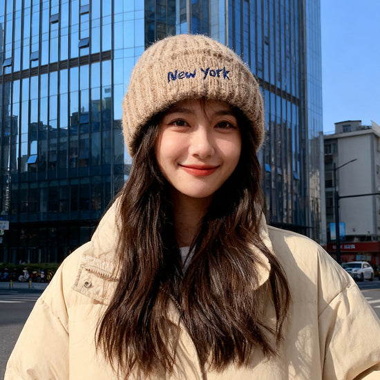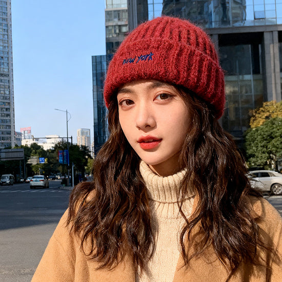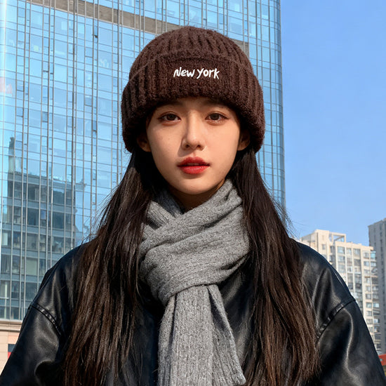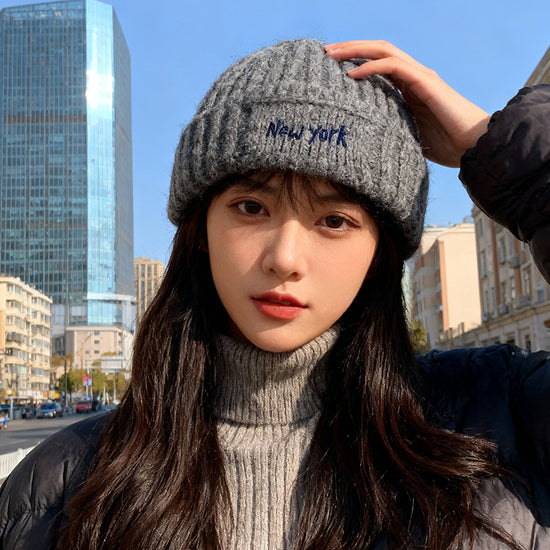 流行帽子|大頭圍字母刺繡針織毛線帽子女冬季保暖防寒冷帽顯臉小瓜皮包頭帽「C5749」25.10-4