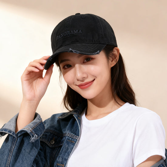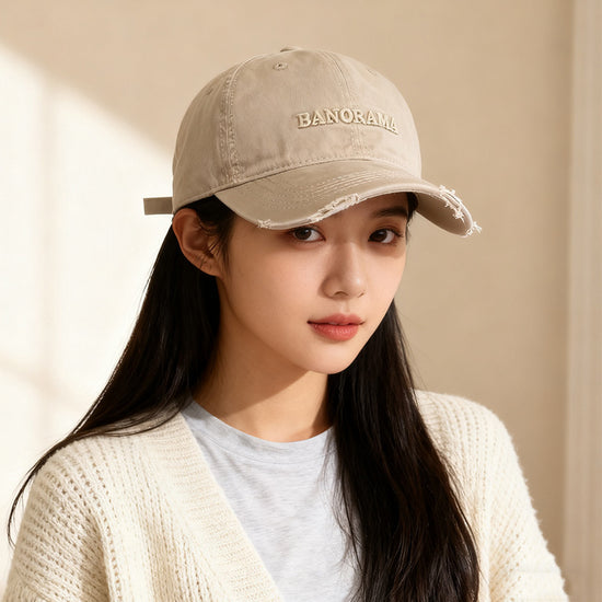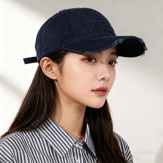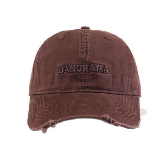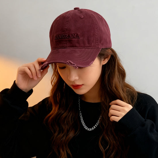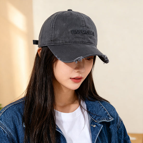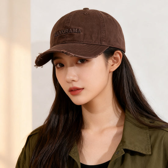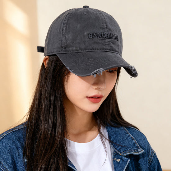 流行帽子|美式復古字母刺繡磨邊棒球帽子女戶外遮陽大頭圍顯臉小鴨舌帽男潮「C5772」25.11-2