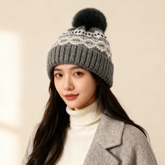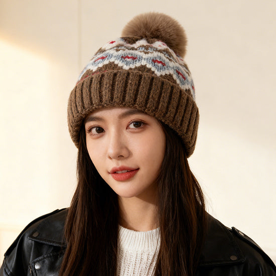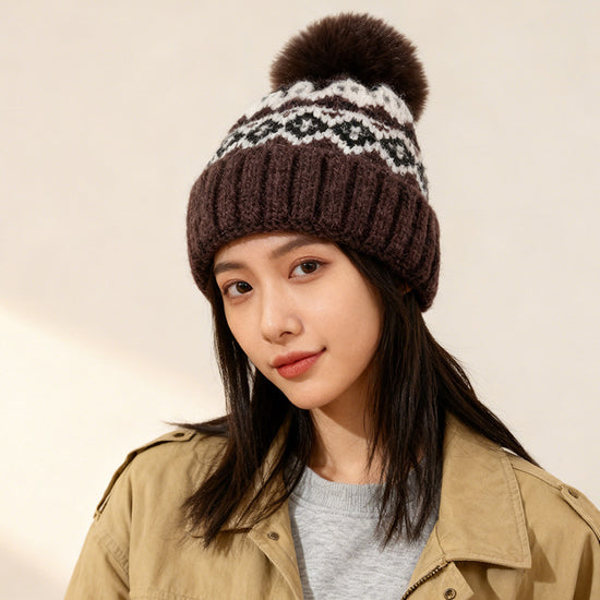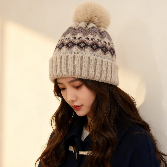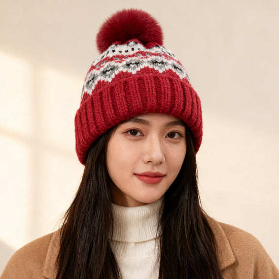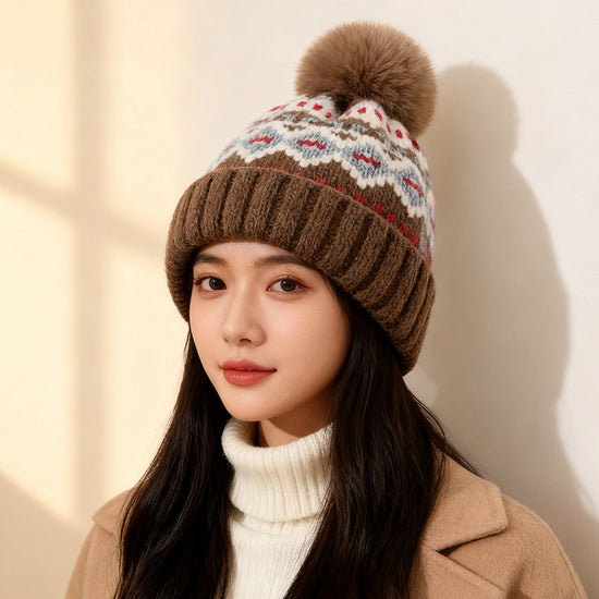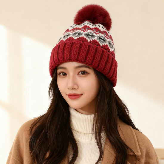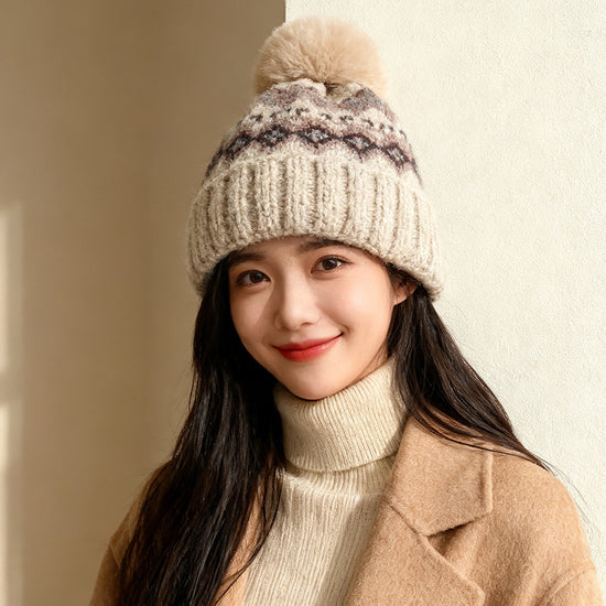 流行帽子|費爾島帽子女秋冬加厚保暖護耳顯臉小毛線帽防寒針織包頭套頭冷帽「C5858」25.11-4
