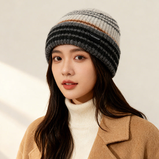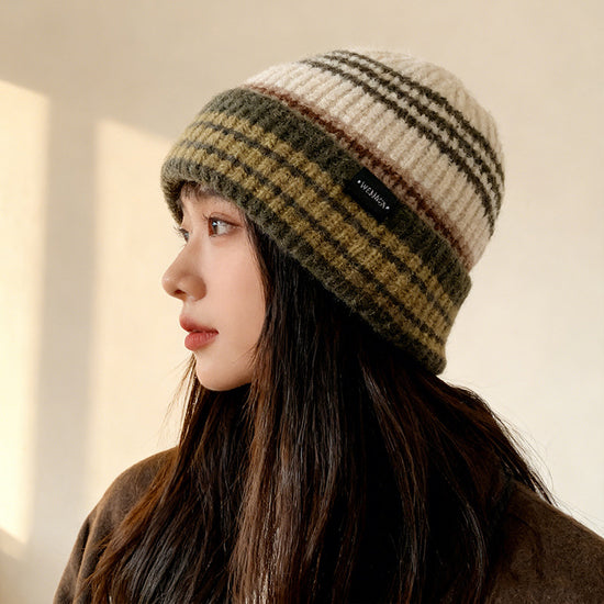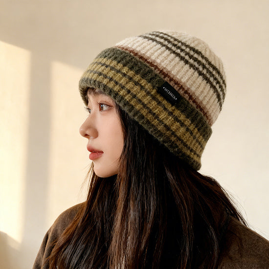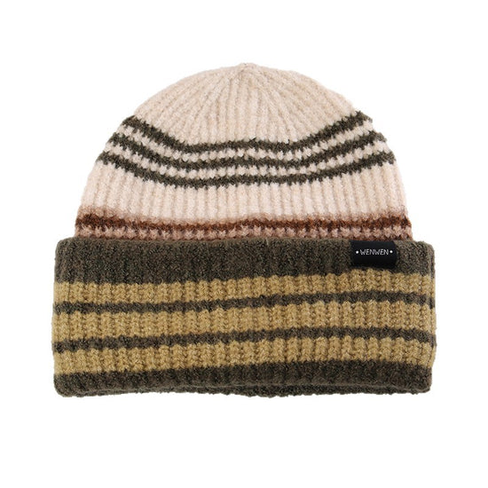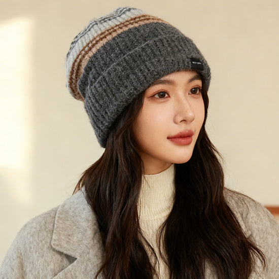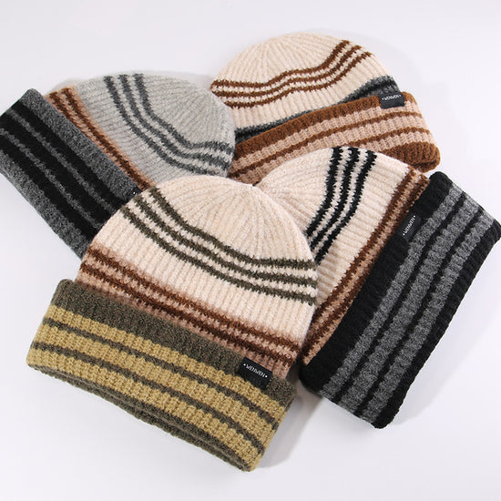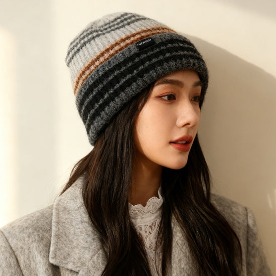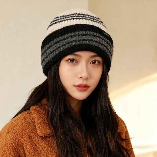 流行帽子|韓版ins條紋拼色帽子女秋冬保暖針織毛線帽男顯臉小戶外堆堆冷帽「C5865」25.11-4
