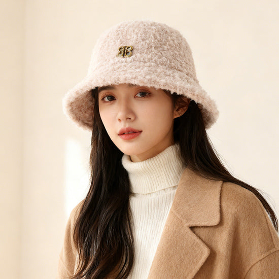 流行帽子|羊羔毛絨漁夫帽子女秋冬2025新款保暖加厚防寒盆帽時尚百搭水桶帽「C5870ASD」25.12-1
